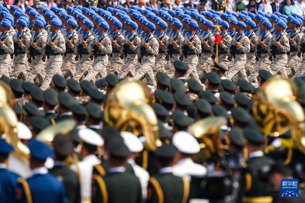 9月3日,紀念中國人民抗日戰爭暨世界反法西斯戰爭勝利80周年大會在北京隆重舉行。這是維和部隊方隊接受檢閱。