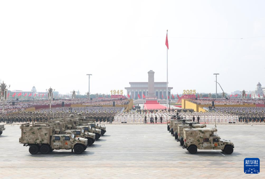 9月3日,紀念中國人民抗日戰爭暨世界反法西斯戰爭勝利80周年大會在北京隆重舉行。這是陸上無人作戰方隊接受檢閱。
