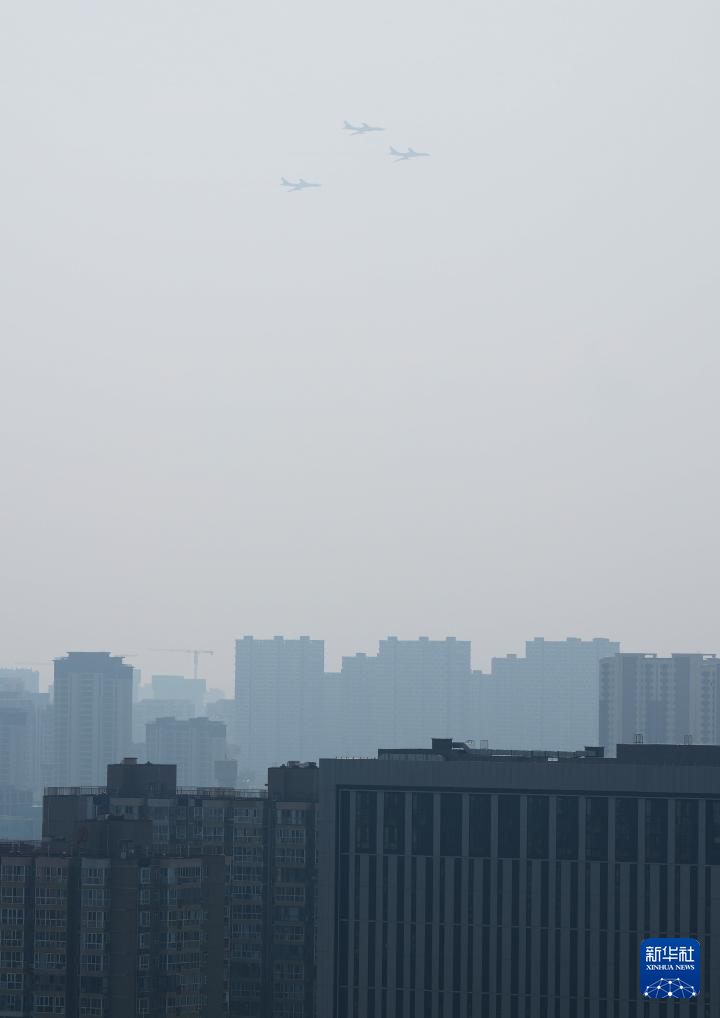 9月3日,紀念中國人民抗日戰爭暨世界反法西斯戰爭勝利80周年大會在北京隆重舉行。這是加受油機梯隊通過天安門廣場。