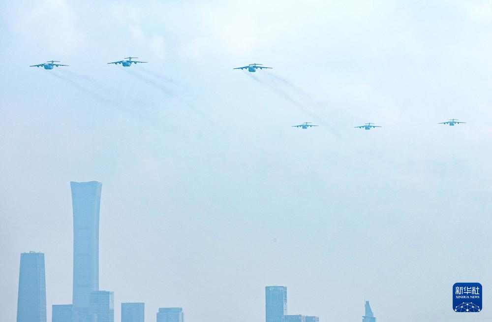 9月3日,紀念中國人民抗日戰爭暨世界反法西斯戰爭勝利80周年大會在北京隆重舉行。這是運輸機梯隊接受檢閱。