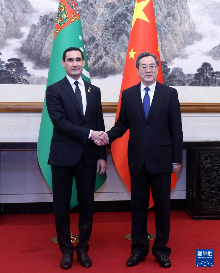 9月2日,中共中央政治局常委、國務院副總理丁薛祥在北京會見來華出席2025年上海合作組織峰會和紀念中國人民抗日戰爭暨世界反法西斯戰爭勝利80周年活動的土庫曼斯坦總統別爾德穆哈梅多夫。
