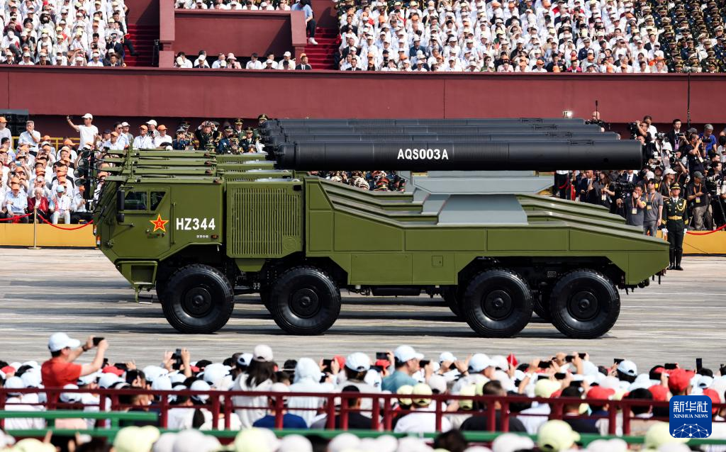 9月3日,紀念中國人民抗日戰爭暨世界反法西斯戰爭勝利80周年大會在北京隆重舉行。這是水下兵器方隊接受檢閱。