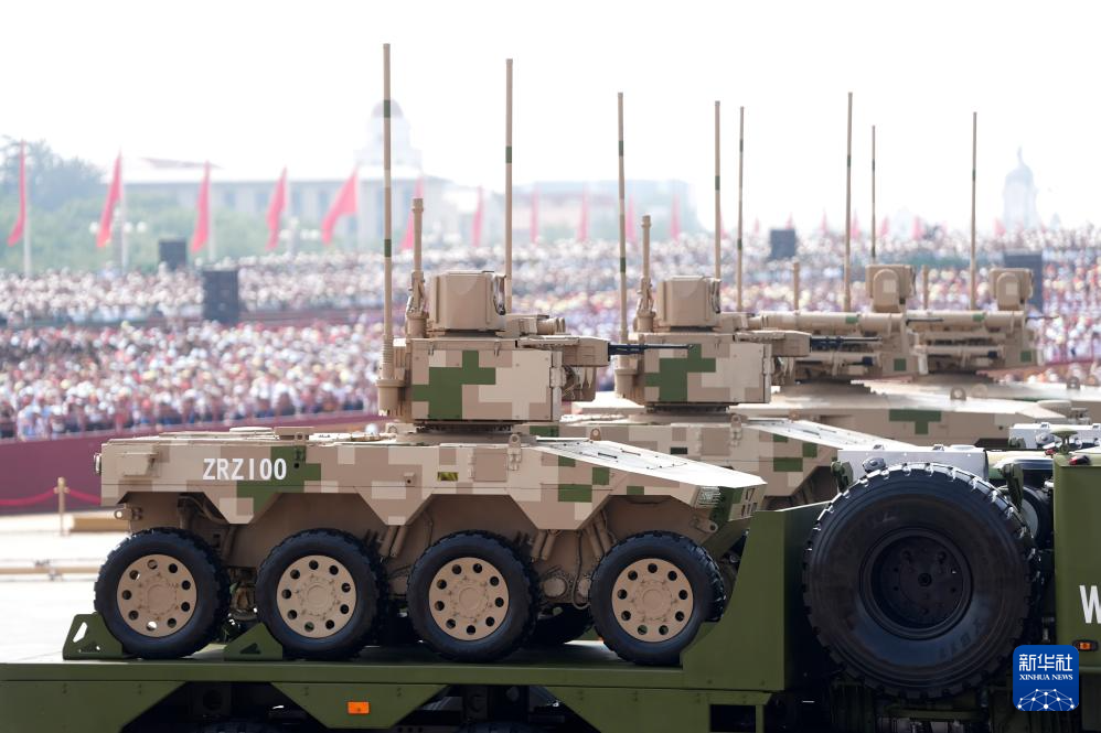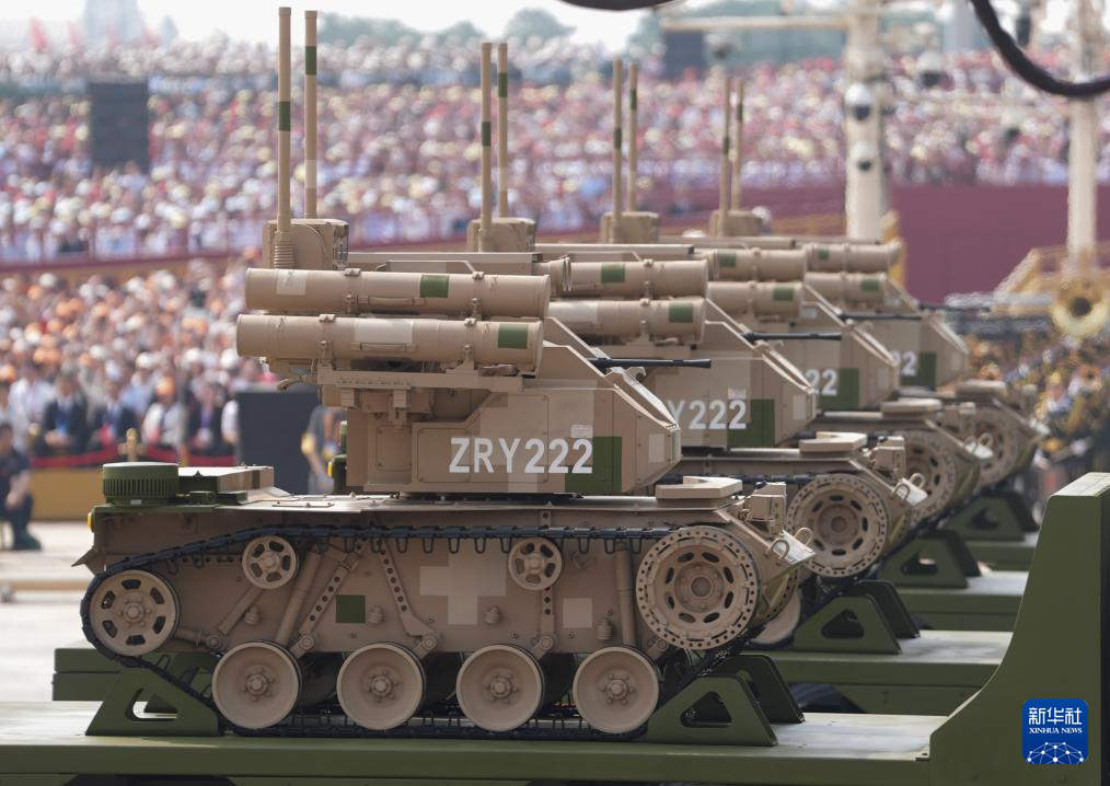 9月3日,紀念中國人民抗日戰爭暨世界反法西斯戰爭勝利80周年大會在北京隆重舉行。這是陸上無人作戰方隊接受檢閱。