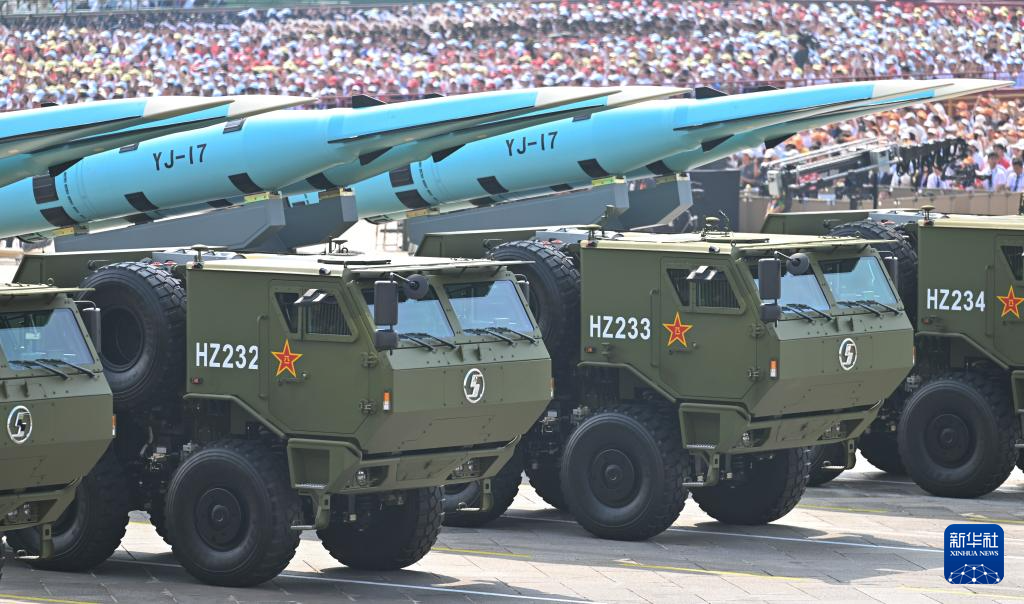 9月3日,紀念中國人民抗日戰爭暨世界反法西斯戰爭勝利80周年大會在北京隆重舉行。這是反艦導彈方隊接受檢閱。