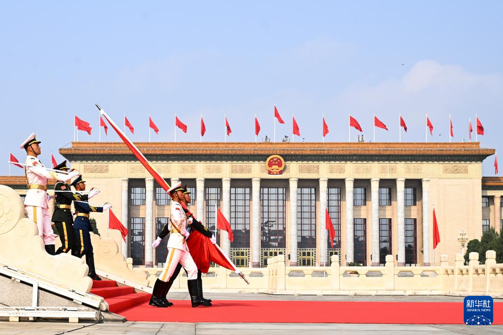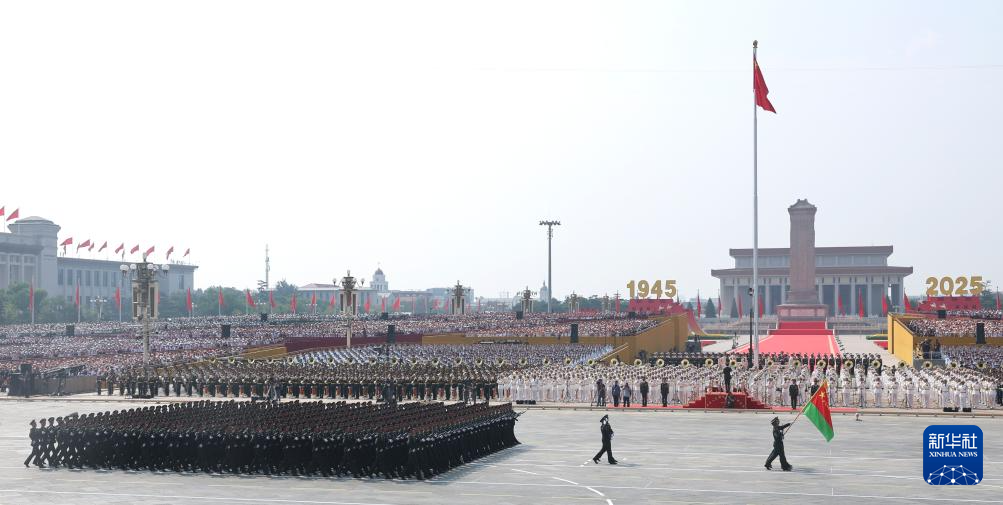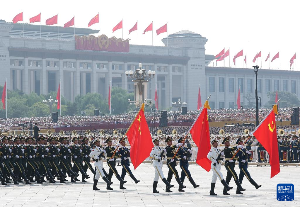 9月3日,紀念中國人民抗日戰爭暨世界反法西斯戰爭勝利80周年大會在北京隆重舉行。這是國旗護衛隊在行進中。