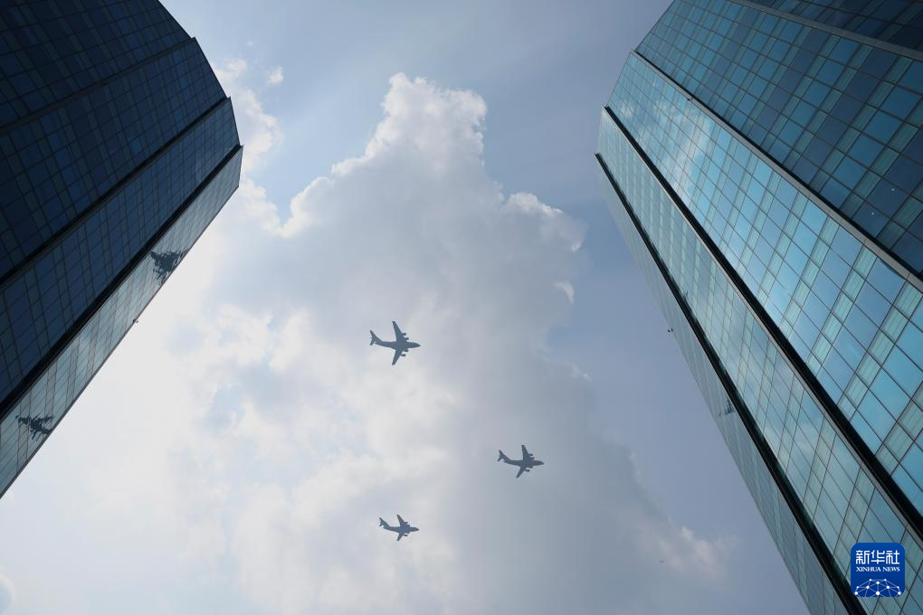 9月3日,紀念中國人民抗日戰爭暨世界反法西斯戰爭勝利80周年大會在北京隆重舉行。這是運輸機梯隊。