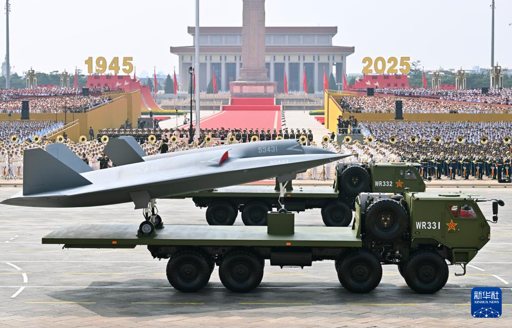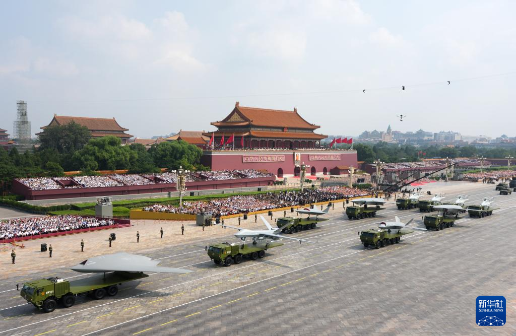 9月3日,紀念中國人民抗日戰爭暨世界反法西斯戰爭勝利80周年大會在北京隆重舉行。這是空中無人作戰方隊接受檢閱。