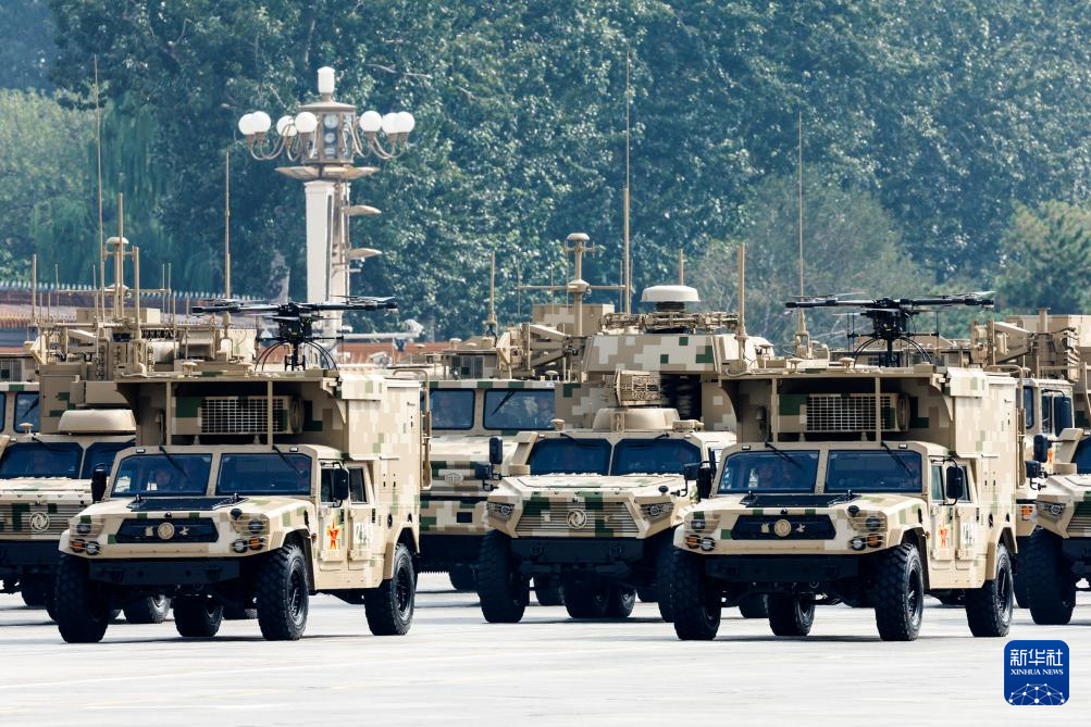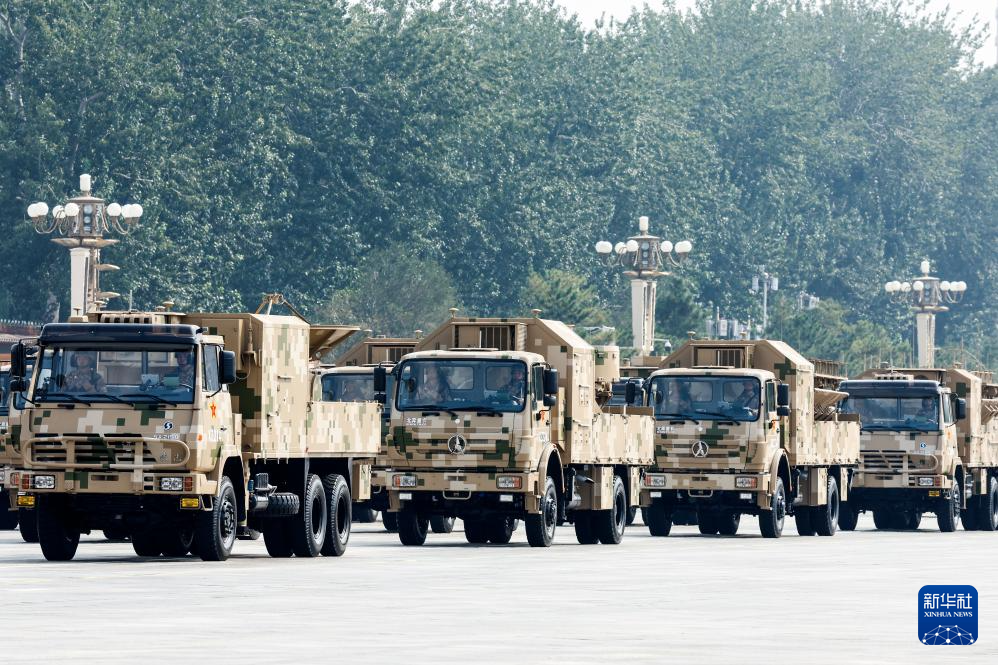 9月3日,紀念中國人民抗日戰爭暨世界反法西斯戰爭勝利80周年大會在北京隆重舉行。這是電子對抗方隊接受檢閱。
