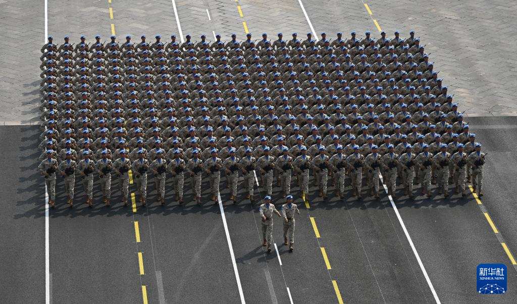 9月3日,紀念中國人民抗日戰爭暨世界反法西斯戰爭勝利80周年大會在北京隆重舉行。這是維和部隊方隊接受檢閱。