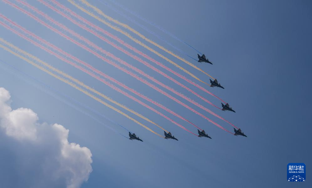 9月3日,紀念中國人民抗日戰爭暨世界反法西斯戰爭勝利80周年大會在北京隆重舉行。這是教練機梯隊接受檢閱。
