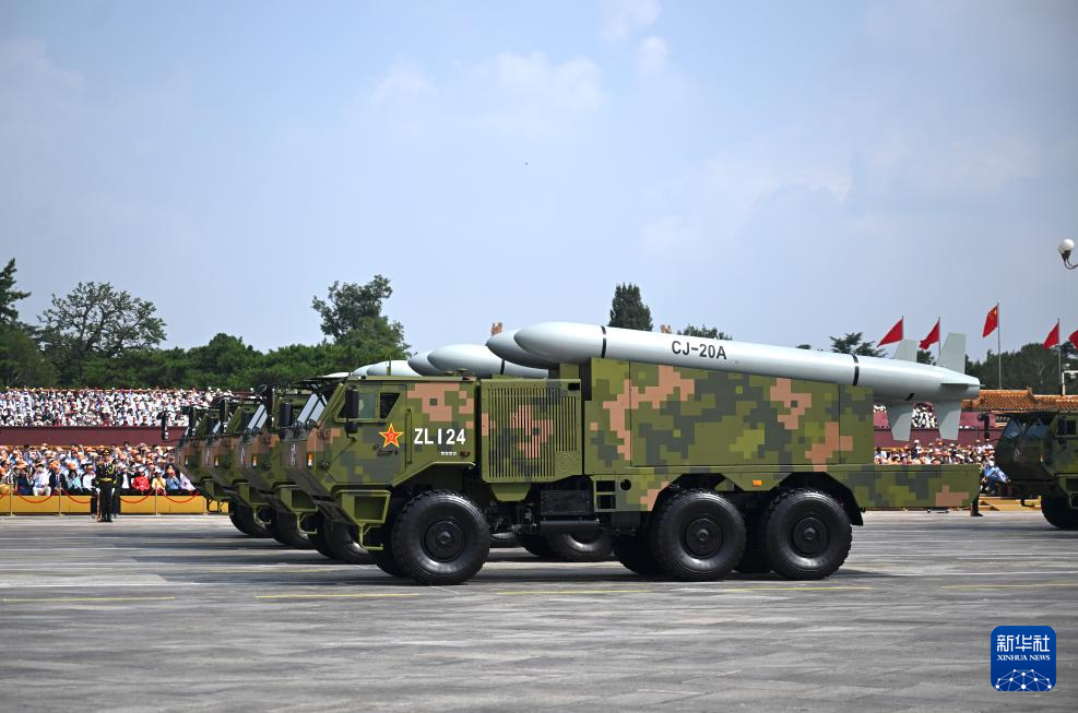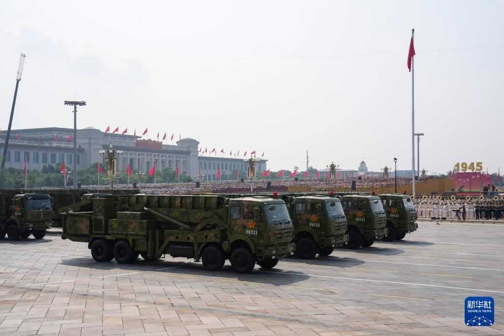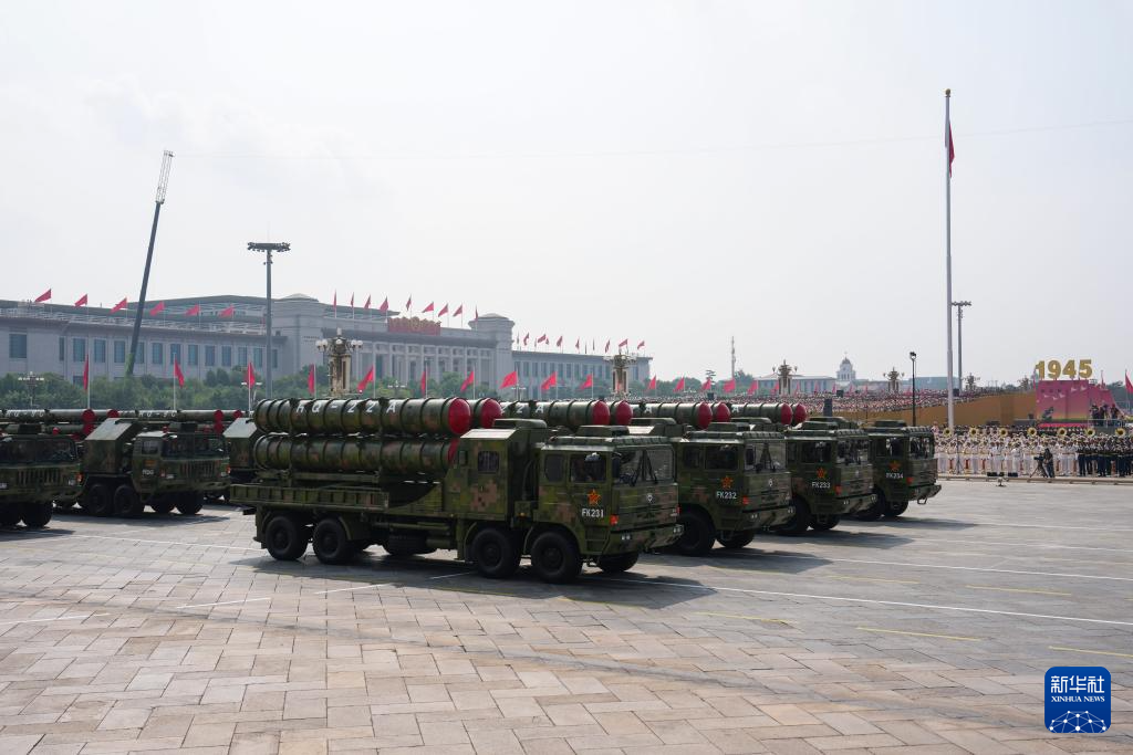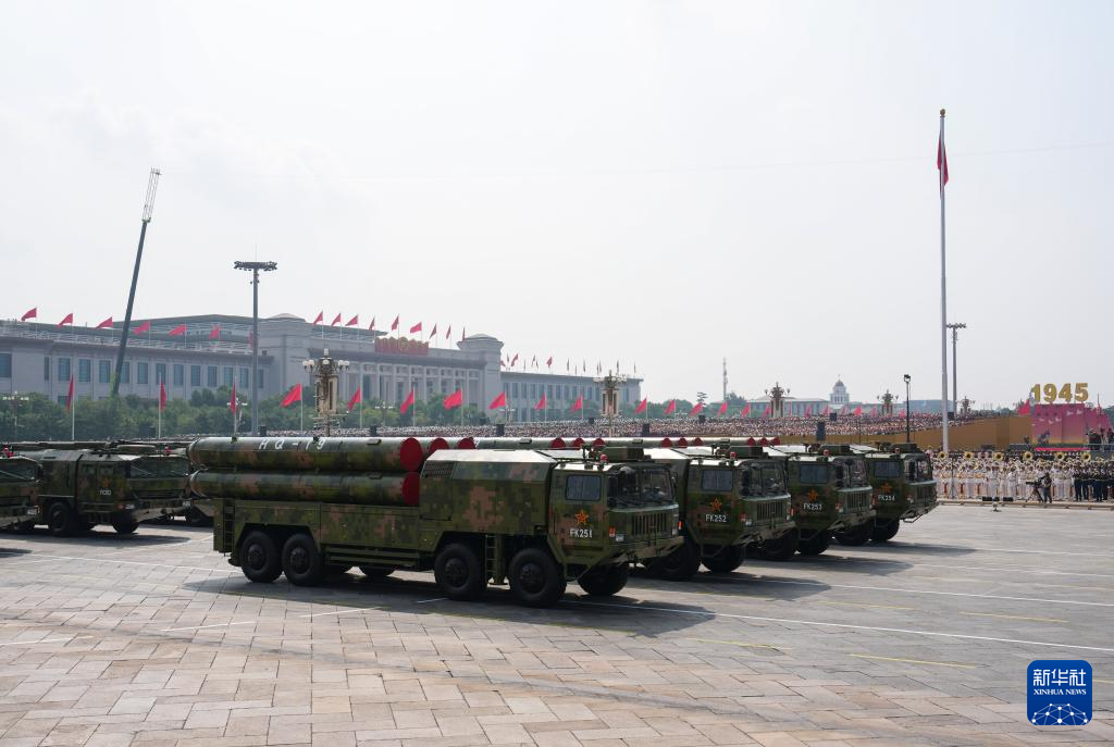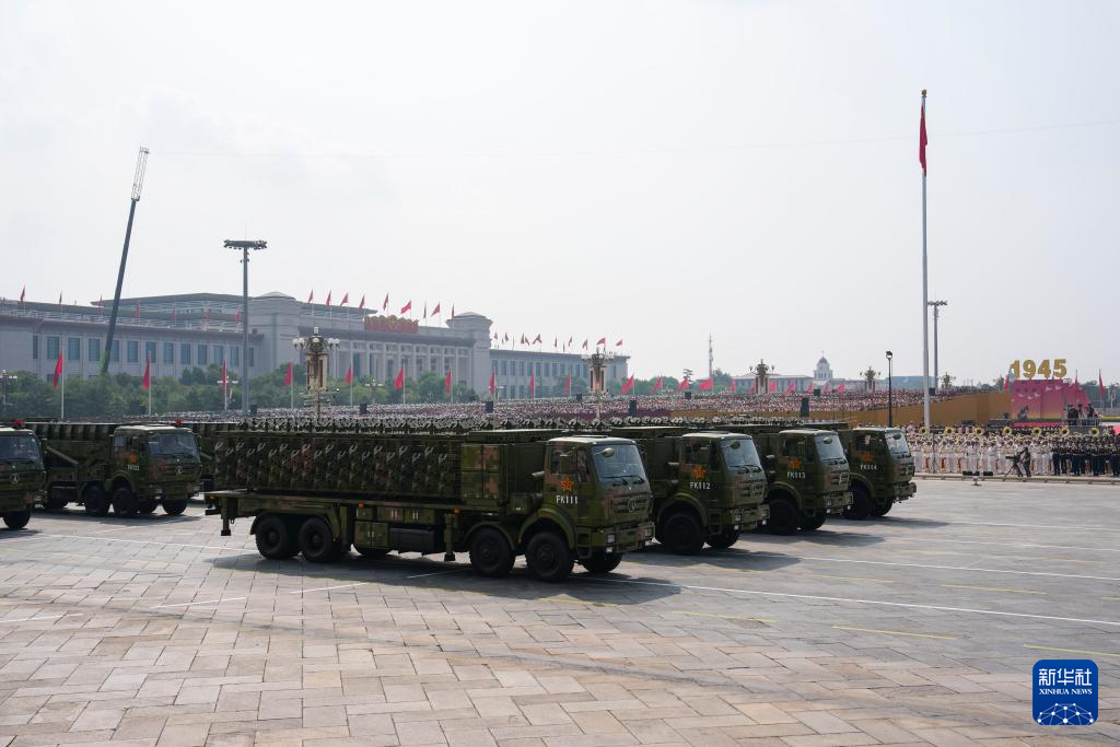 9月3日,紀念中國人民抗日戰爭暨世界反法西斯戰爭勝利80周年大會在北京隆重舉行。這是高超聲速導彈方隊接受檢閱。