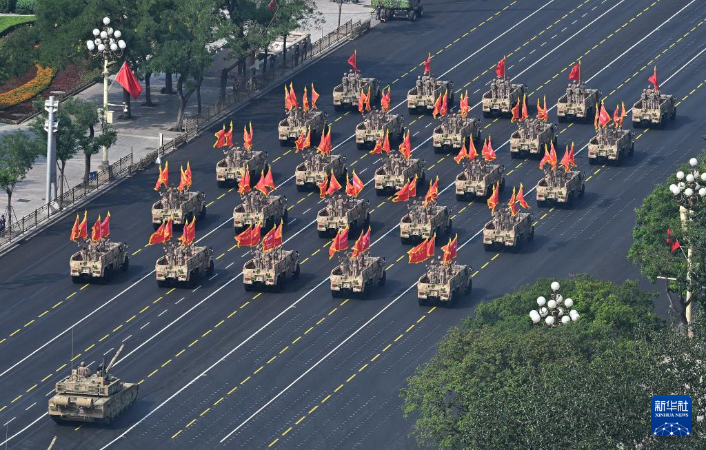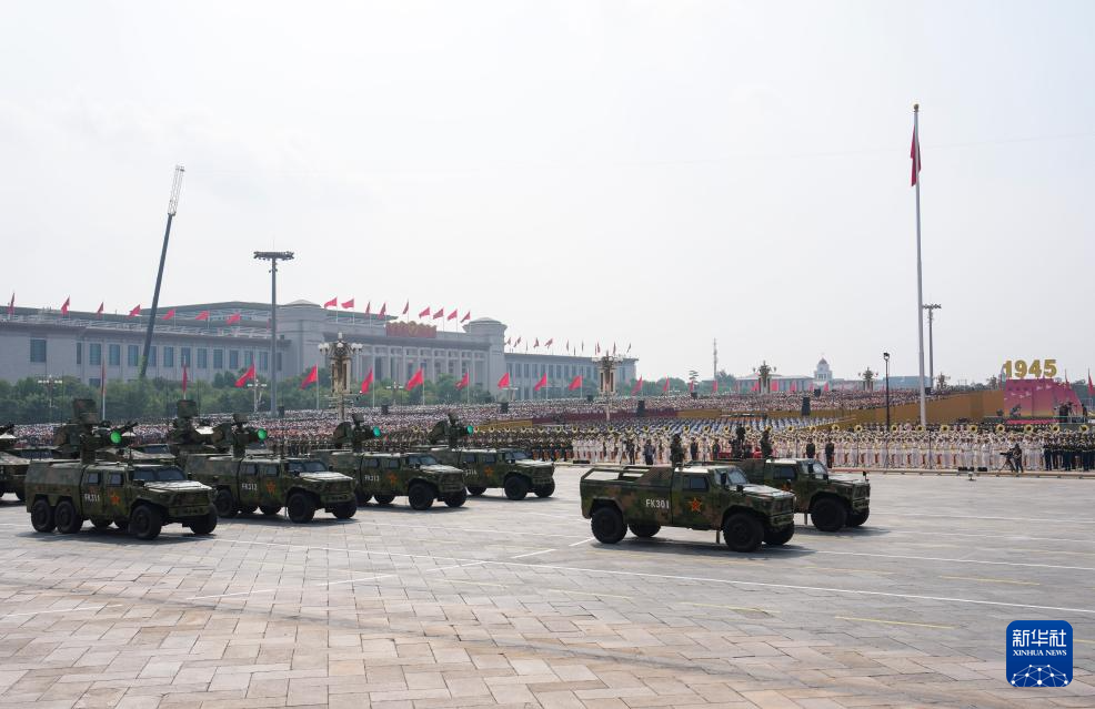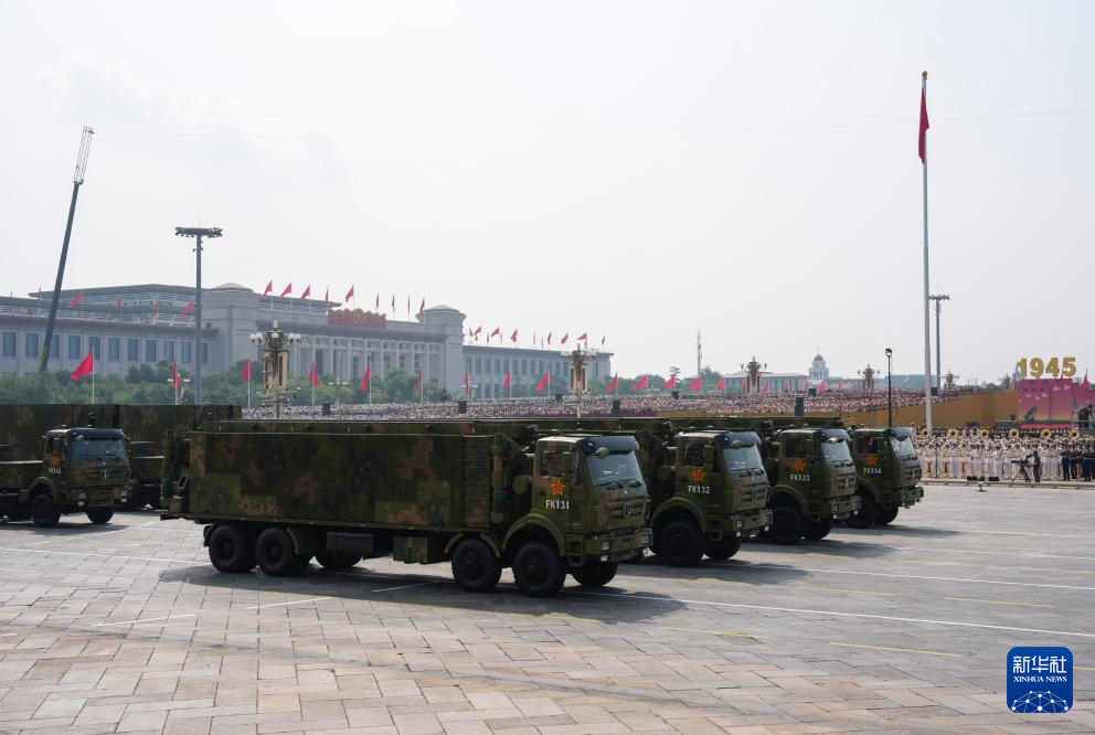 9月3日,紀念中國人民抗日戰爭暨世界反法西斯戰爭勝利80周年大會在北京隆重舉行。這是信息支援部隊方隊接受檢閱。
