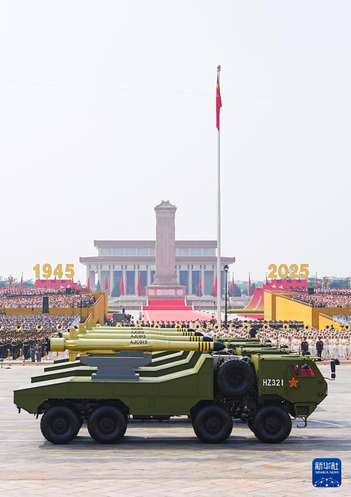 9月3日,紀念中國人民抗日戰爭暨世界反法西斯戰爭勝利80周年大會在北京隆重舉行。這是反艦導彈方隊接受檢閱。