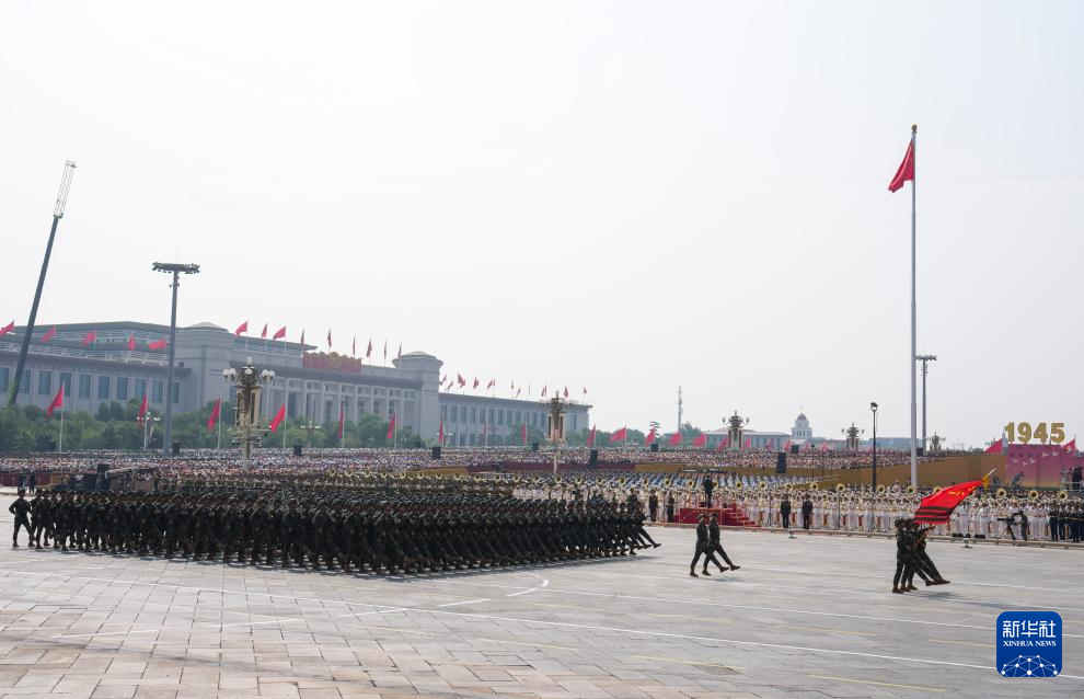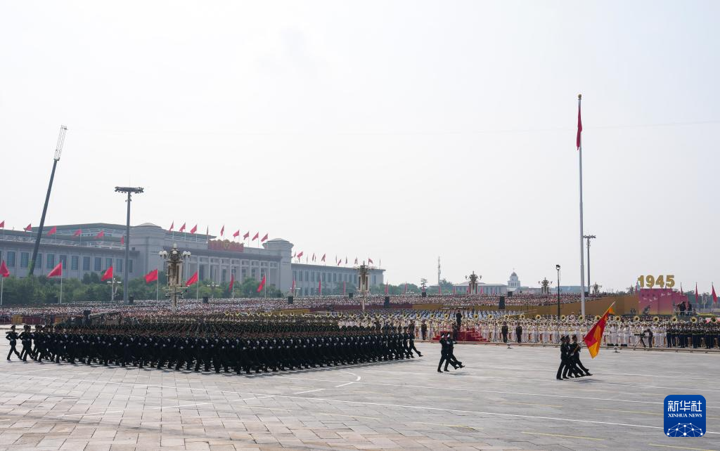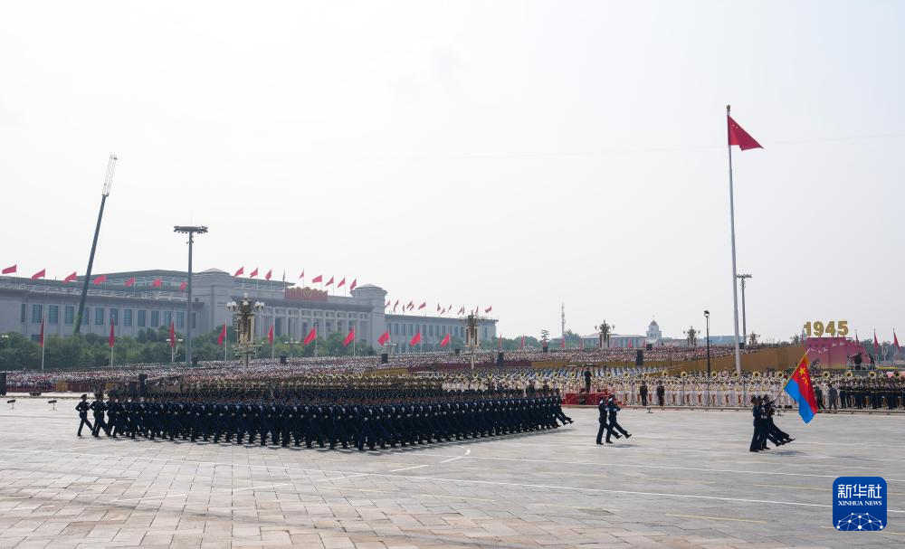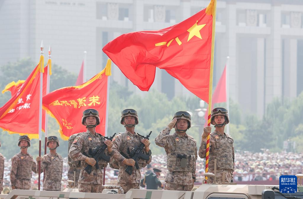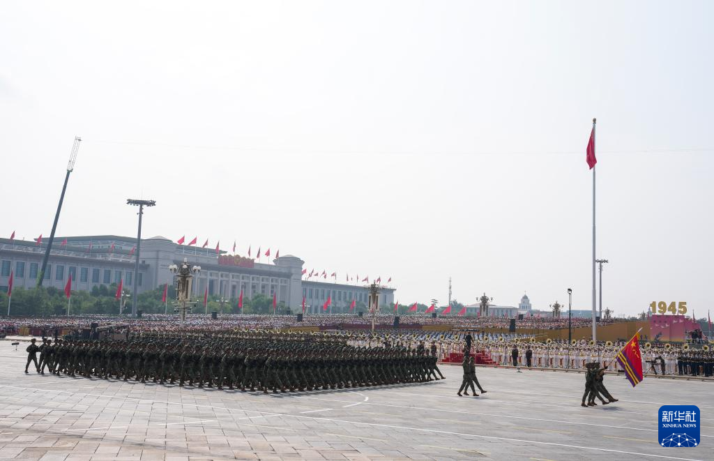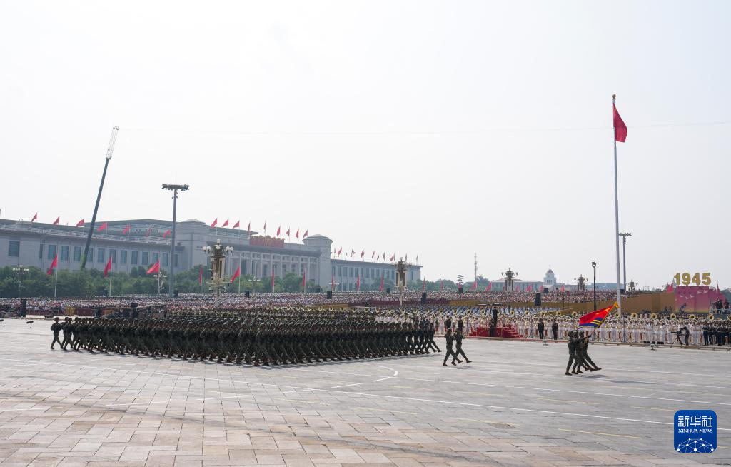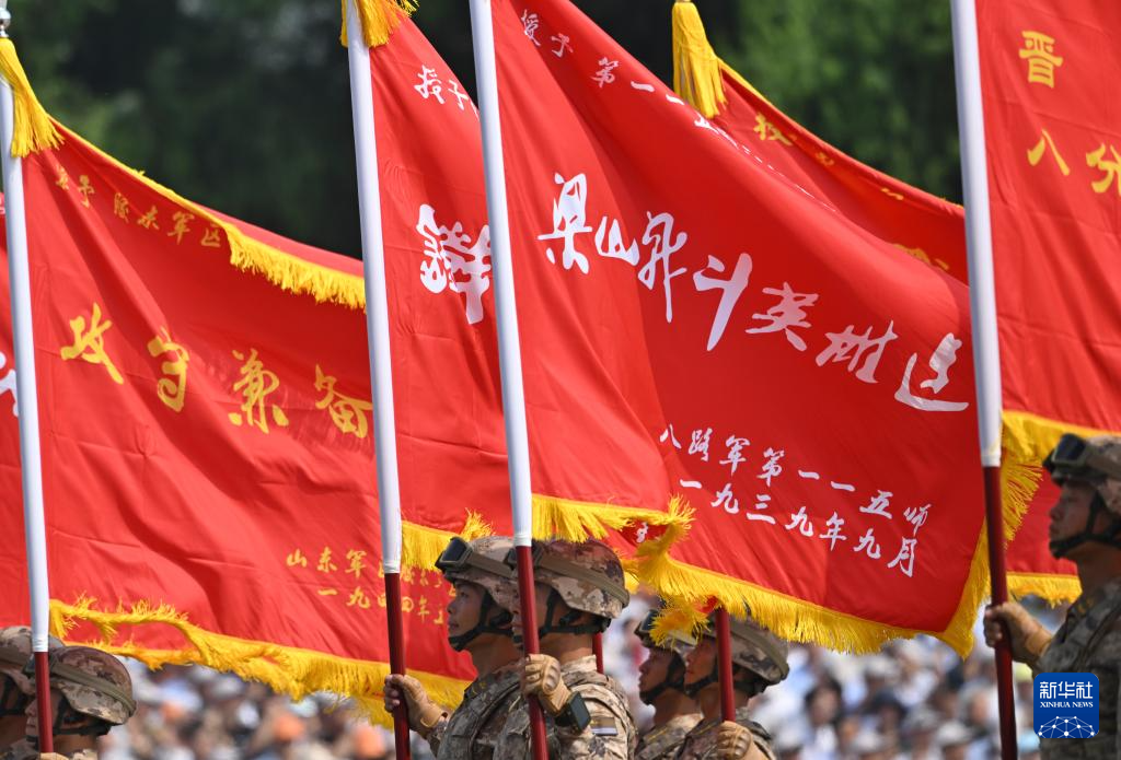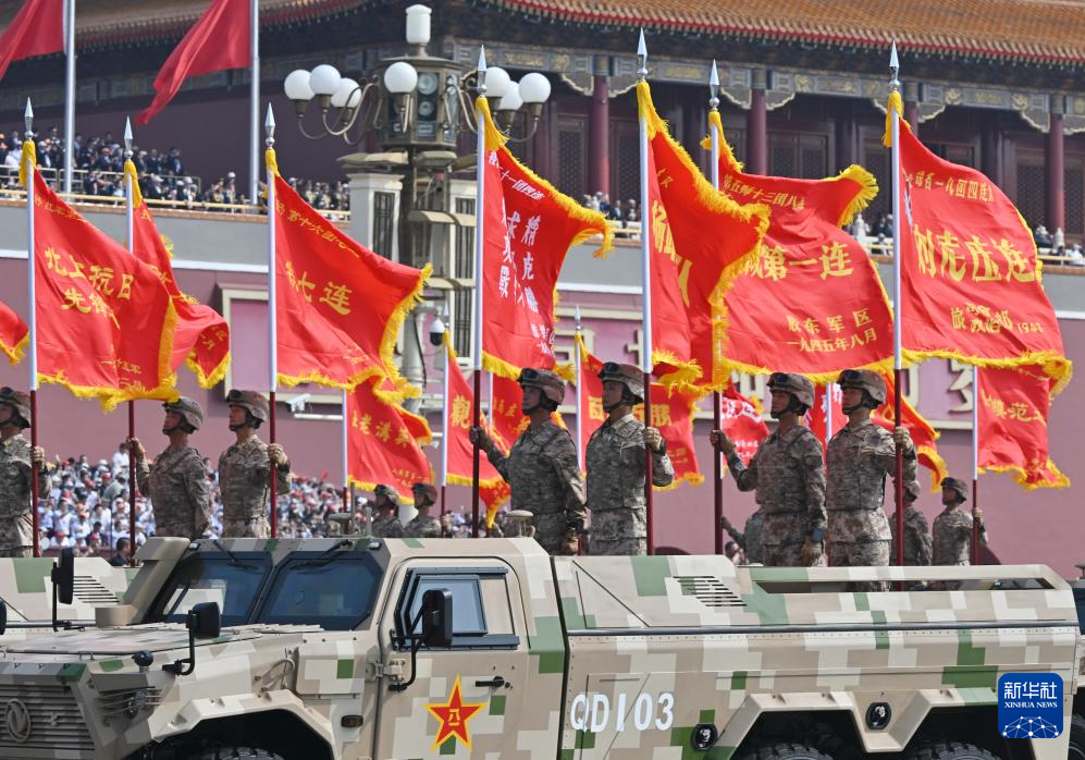 9月3日,紀念中國人民抗日戰爭暨世界反法西斯戰爭勝利80周年大會在北京隆重舉行。這是戰旗方隊接受檢閱。