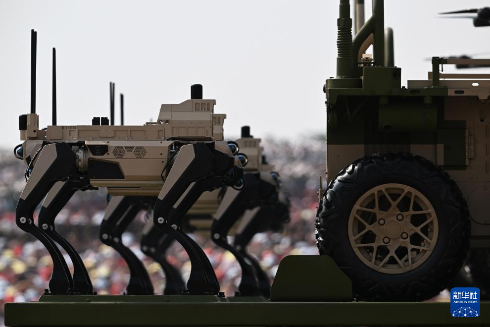 9月3日,紀念中國人民抗日戰爭暨世界反法西斯戰爭勝利80周年大會在北京隆重舉行。這是陸上無人作戰方隊接受檢閱。