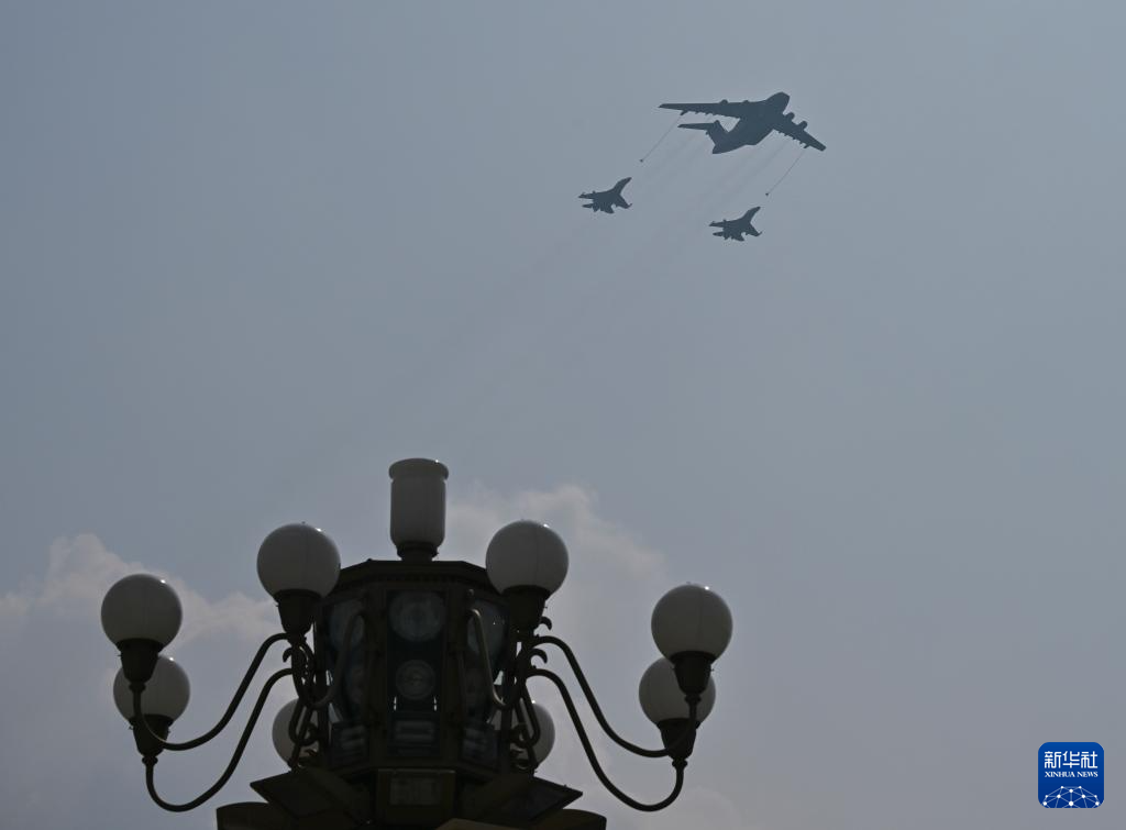 9月3日,紀念中國人民抗日戰爭暨世界反法西斯戰爭勝利80周年大會在北京隆重舉行。這是加受油機梯隊接受檢閱。