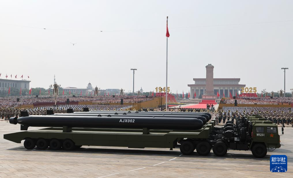 9月3日,紀念中國人民抗日戰爭暨世界反法西斯戰爭勝利80周年大會在北京隆重舉行。這是水下兵器方隊接受檢閱。