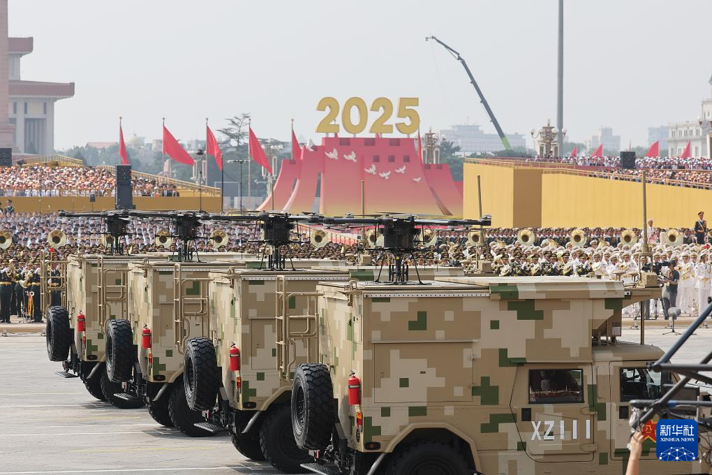 9月3日,紀念中國人民抗日戰爭暨世界反法西斯戰爭勝利80周年大會在北京隆重舉行。這是反無人機方隊接受檢閱。