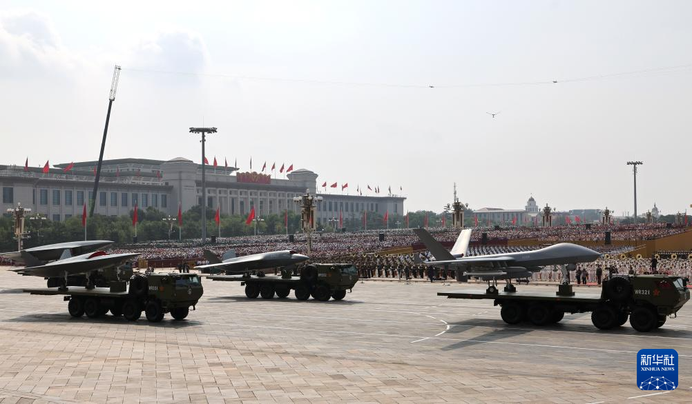 9月3日,紀念中國人民抗日戰爭暨世界反法西斯戰爭勝利80周年大會在北京隆重舉行。這是空中無人作戰方隊接受檢閱。