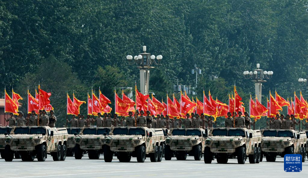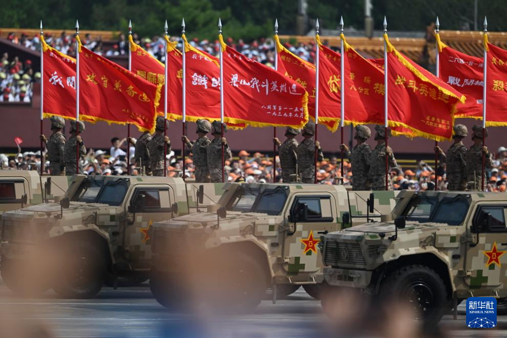 9月3日,紀念中國人民抗日戰爭暨世界反法西斯戰爭勝利80周年大會在北京隆重舉行。這是戰旗方隊接受檢閱。