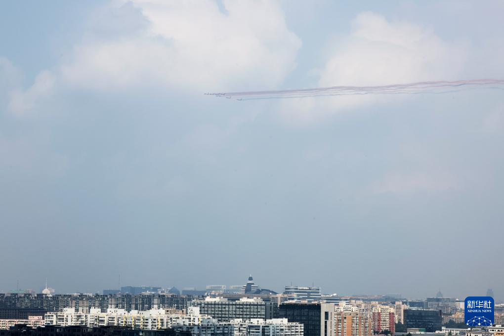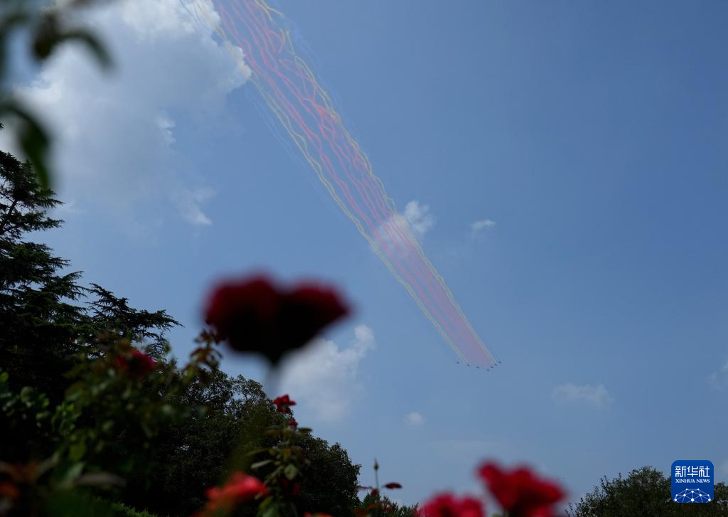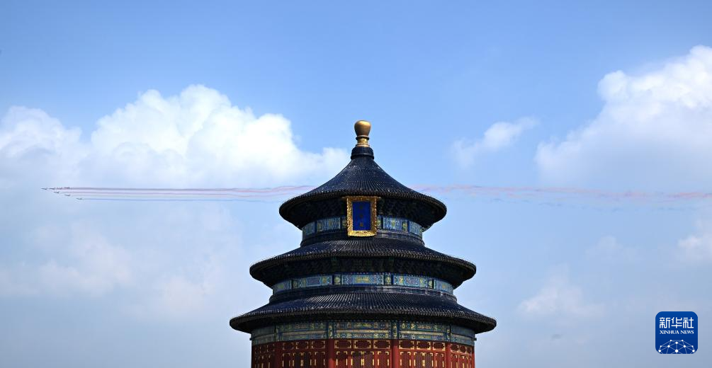 9月3日,紀念中國人民抗日戰爭暨世界反法西斯戰爭勝利80周年大會在北京隆重舉行。這是在北京天壇公園拍攝的教練機梯隊。