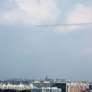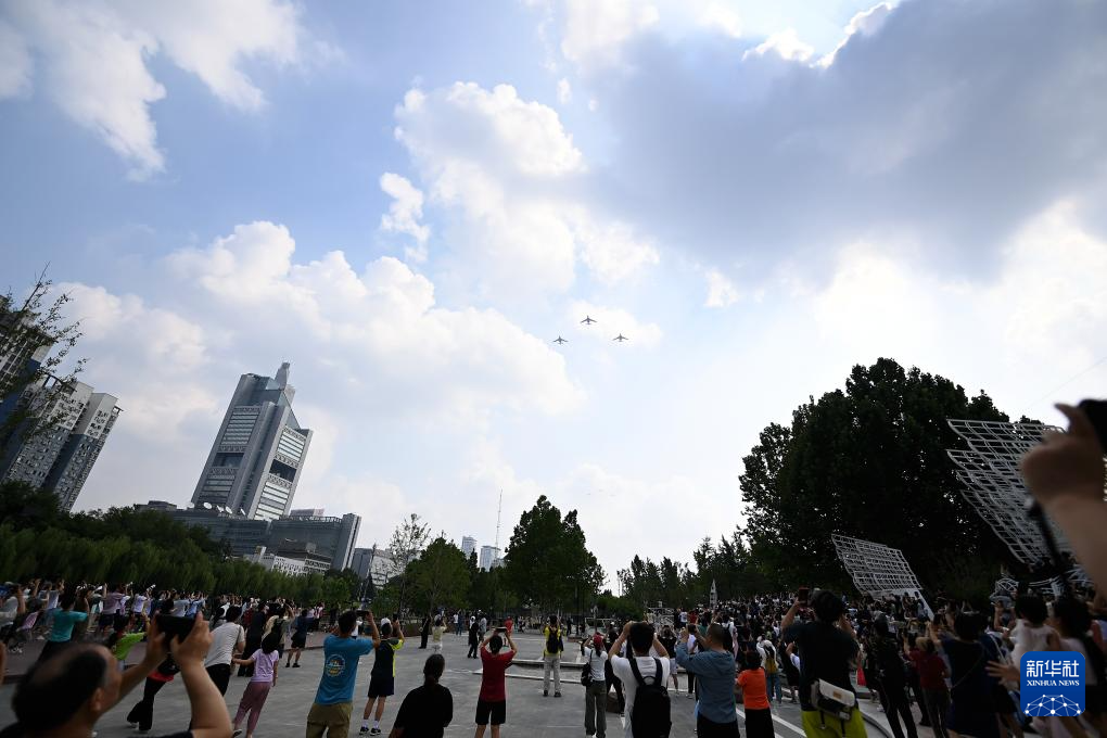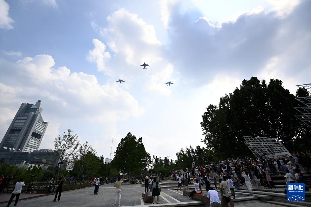 9月3日,紀念中國人民抗日戰爭暨世界反法西斯戰爭勝利80周年大會在北京隆重舉行。這是市民在觀看空中梯隊。