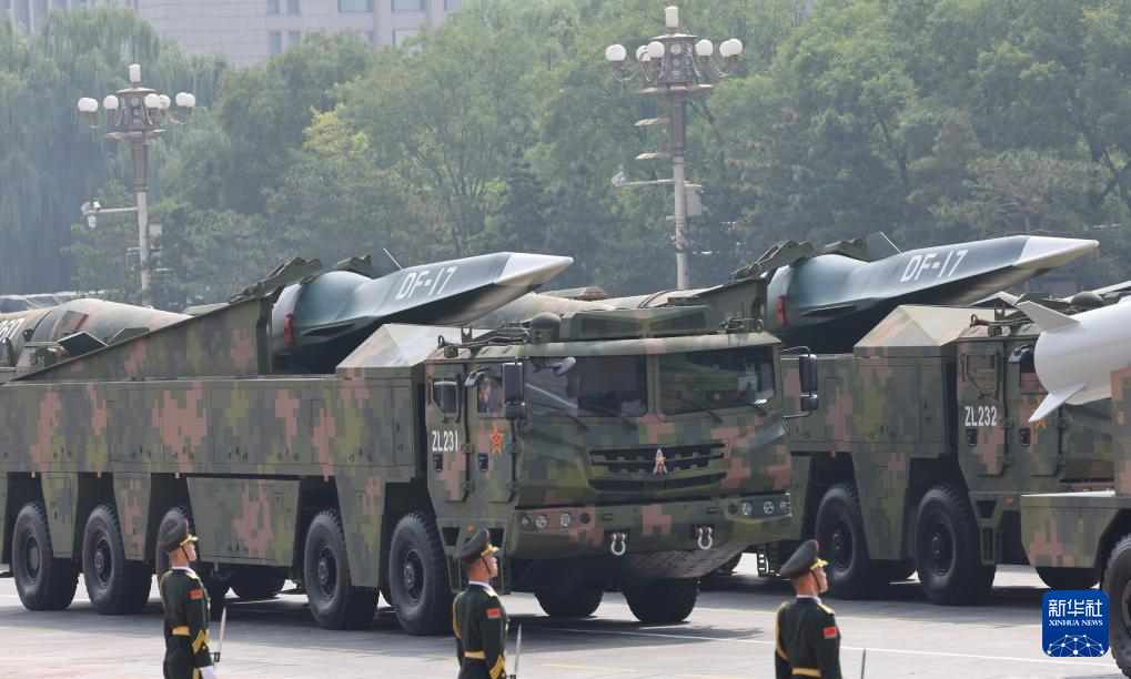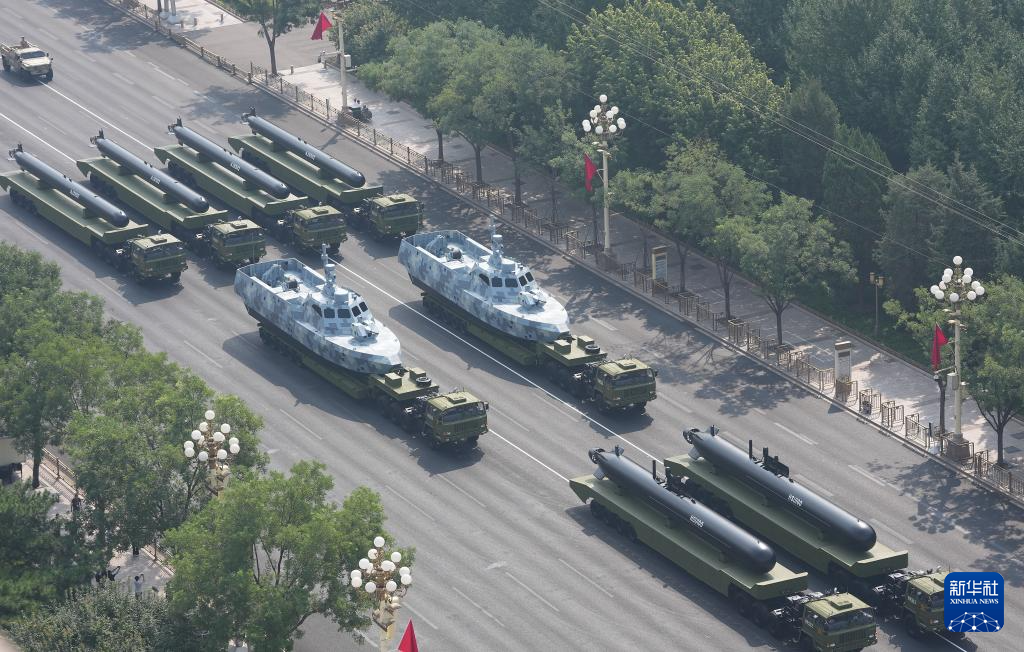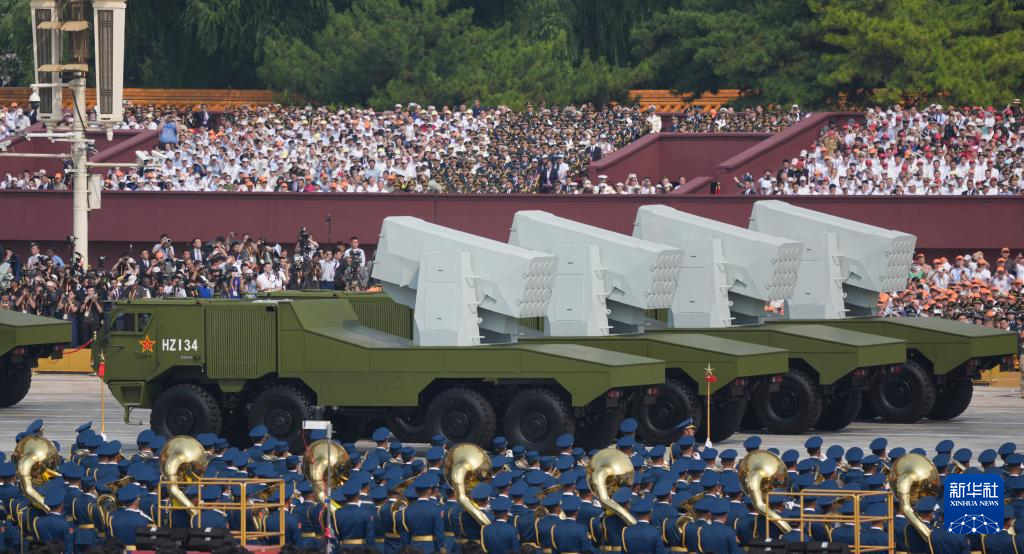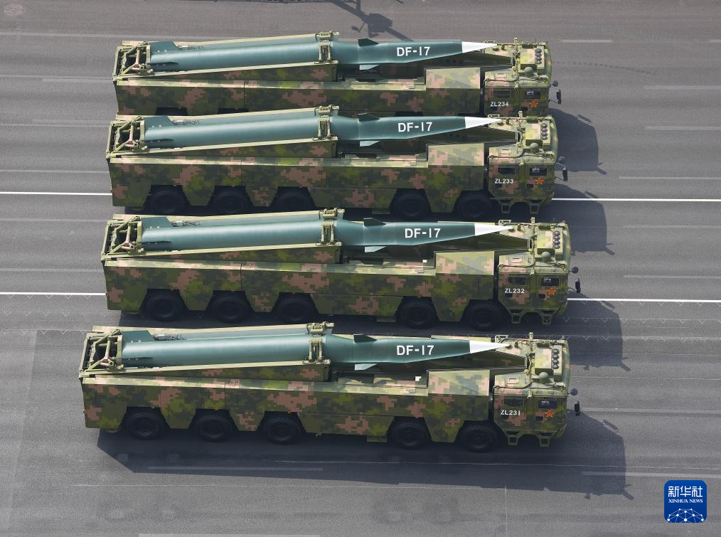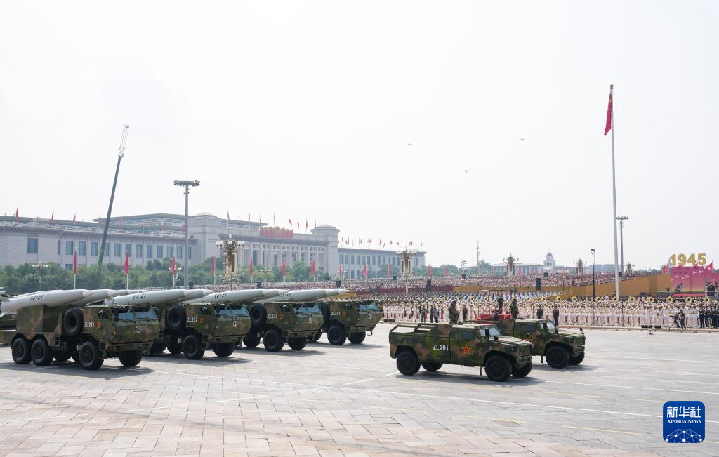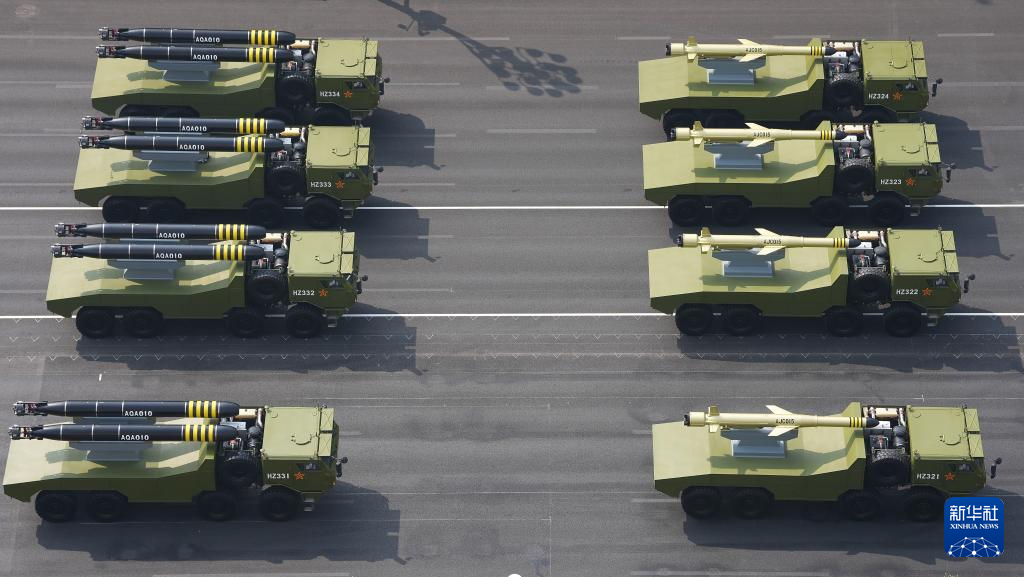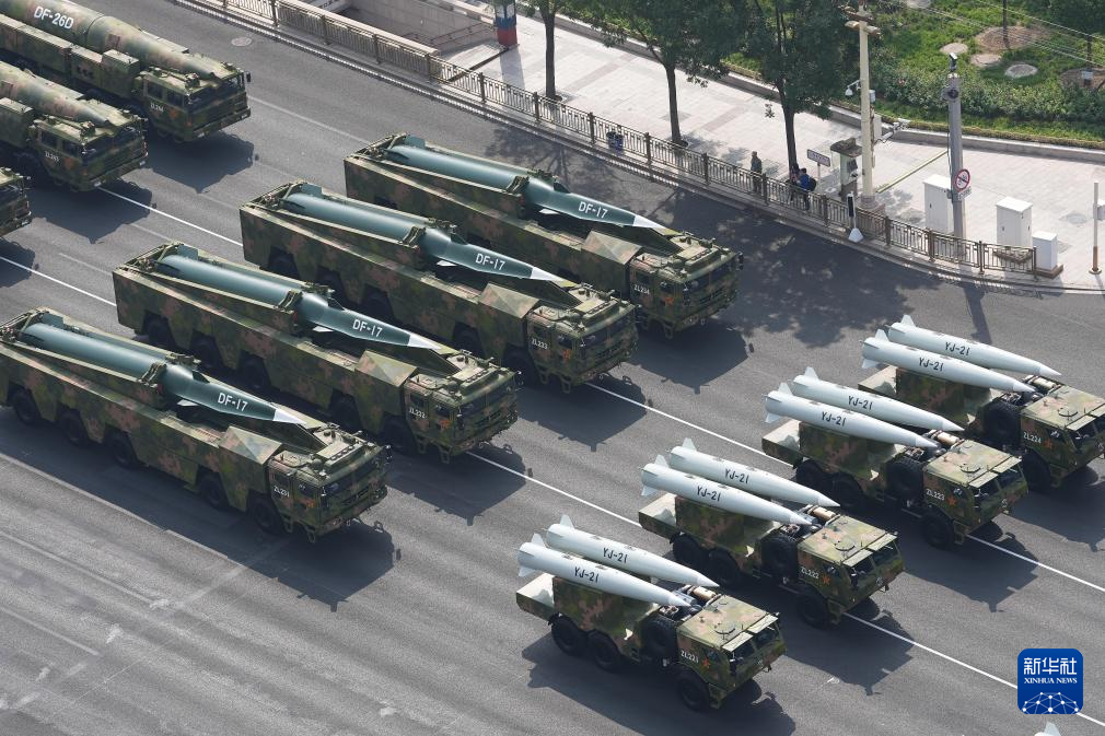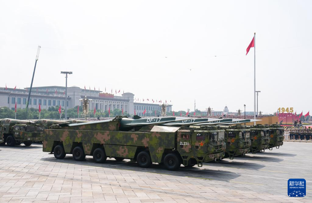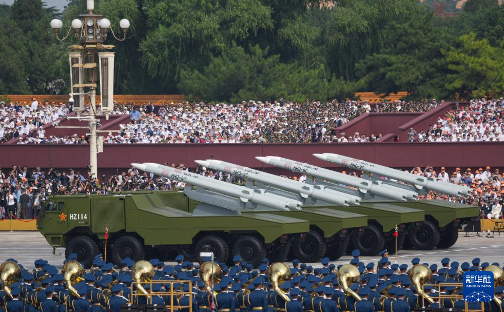 9月3日,紀念中國人民抗日戰爭暨世界反法西斯戰爭勝利80周年大會在北京隆重舉行。這是高超聲速導彈方隊接受檢閱。