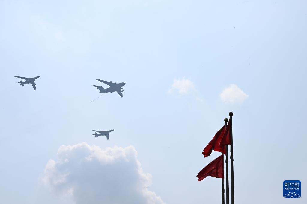 9月3日,紀念中國人民抗日戰爭暨世界反法西斯戰爭勝利80周年大會在北京隆重舉行。這是加受油機梯隊接受檢閱。
