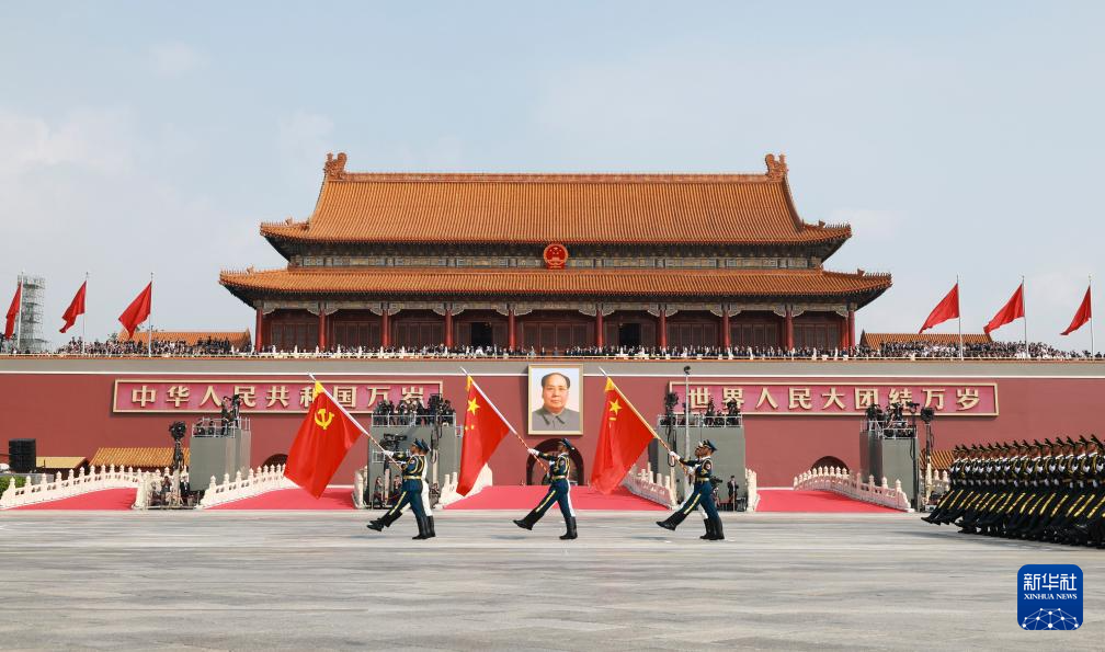 9月3日,紀念中國人民抗日戰爭暨世界反法西斯戰爭勝利80周年大會在北京隆重舉行。這是戰旗方隊通過天安門廣場。