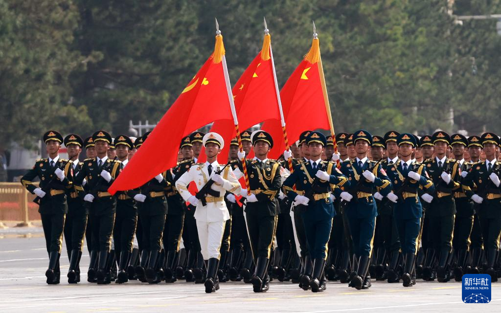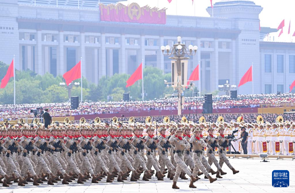9月3日,紀念中國人民抗日戰爭暨世界反法西斯戰爭勝利80周年大會在北京隆重舉行。這是儀仗方隊接受檢閱。