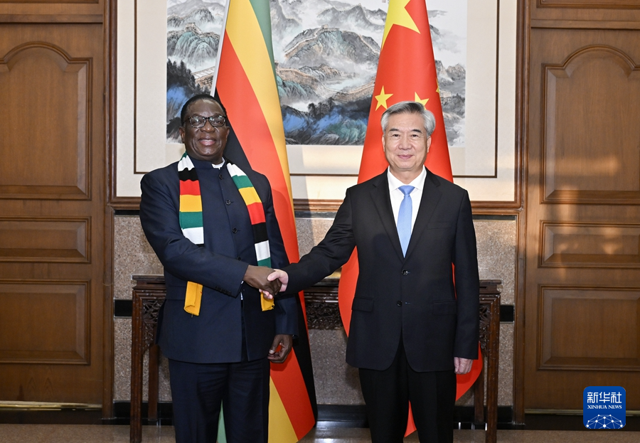 9月4日,中共中央政治局常委、中央紀委書記李希在北京會見來華出席紀念中國人民抗日戰爭暨世界反法西斯戰爭勝利80周年活動的津巴布韋總統姆南加古瓦。
