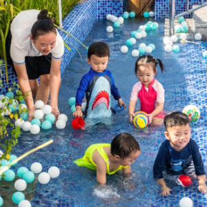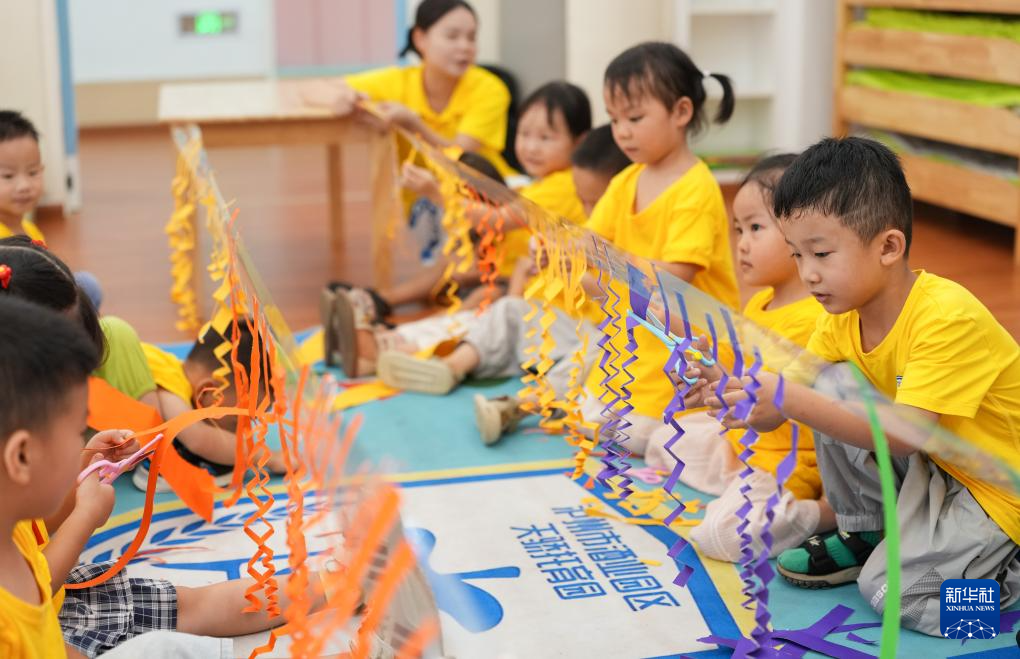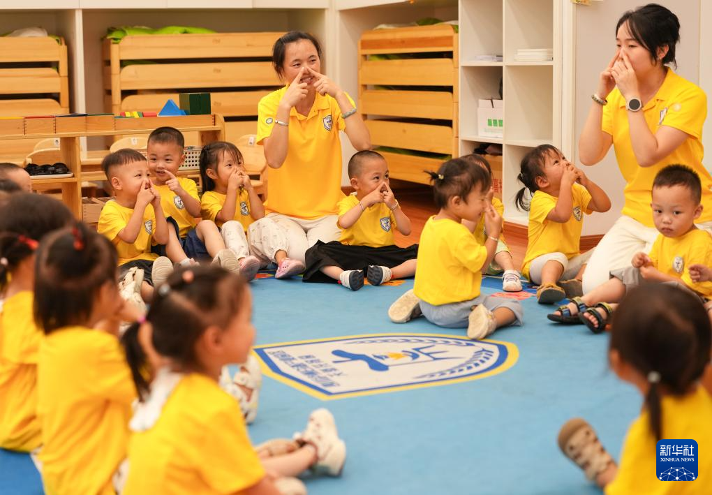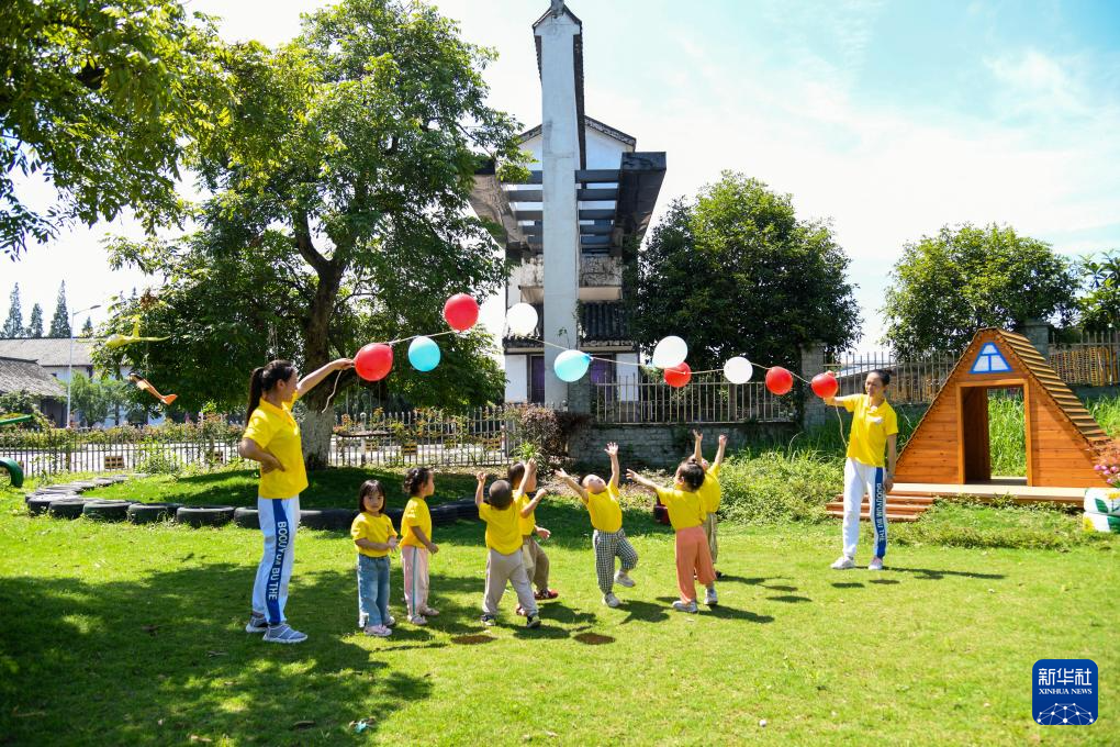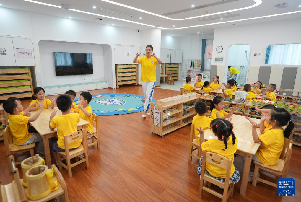 9月5日,四川瀘州白酒產業園區天驕托育園的老師帶領孩子們做游戲。