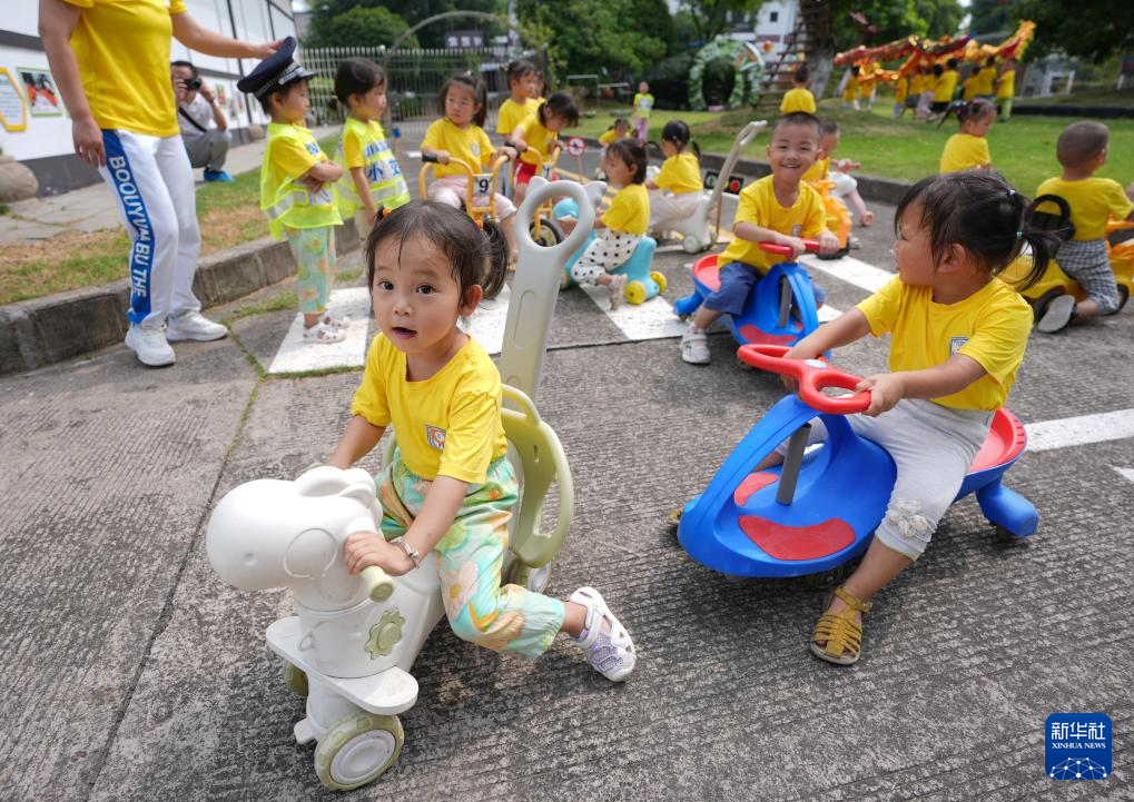 9月5日,四川瀘州白酒產業園區天驕托育園的老師帶領孩子們舞龍。