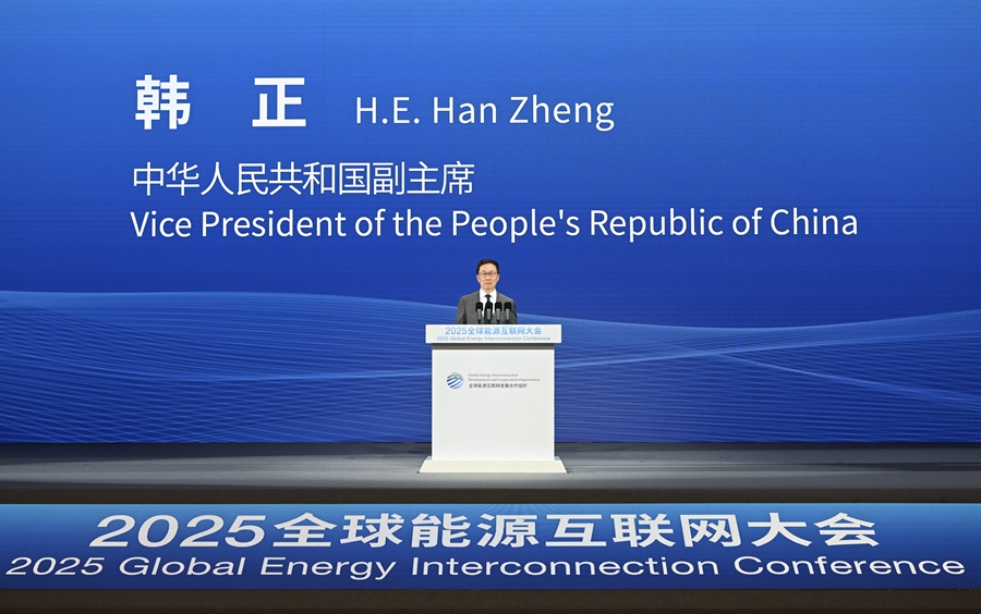 9月9日,國家副主席韓正在北京出席2025全球能源互聯網大會并致辭。