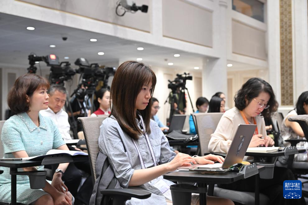 9月10日,國務院新聞辦公室在北京舉行“高質量完成‘十四五’規劃”系列主題新聞發布會,文化和旅游部副部長、國家文物局局長饒權,國家文物局副局長解冰,國家文物局副局長喬云飛,國家文物局副局長孫德立介紹“十四五”時期文物事業高質量發展有關情況,并答記者問。這是記者在發布會上工作。