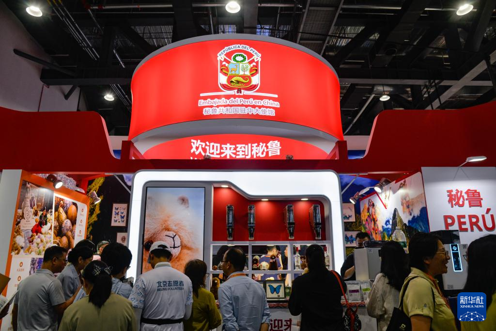 9月10日,參展者在2025年服貿會主題展秘魯展臺參觀、咨詢。