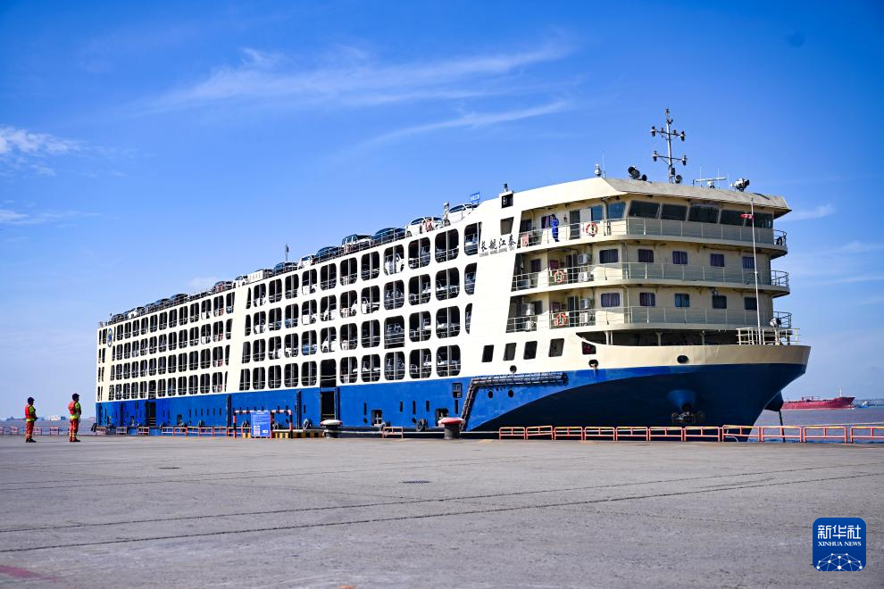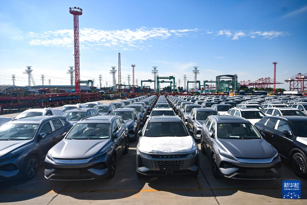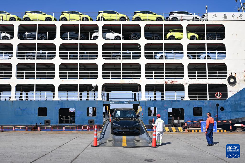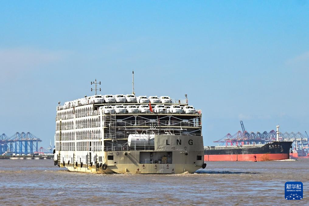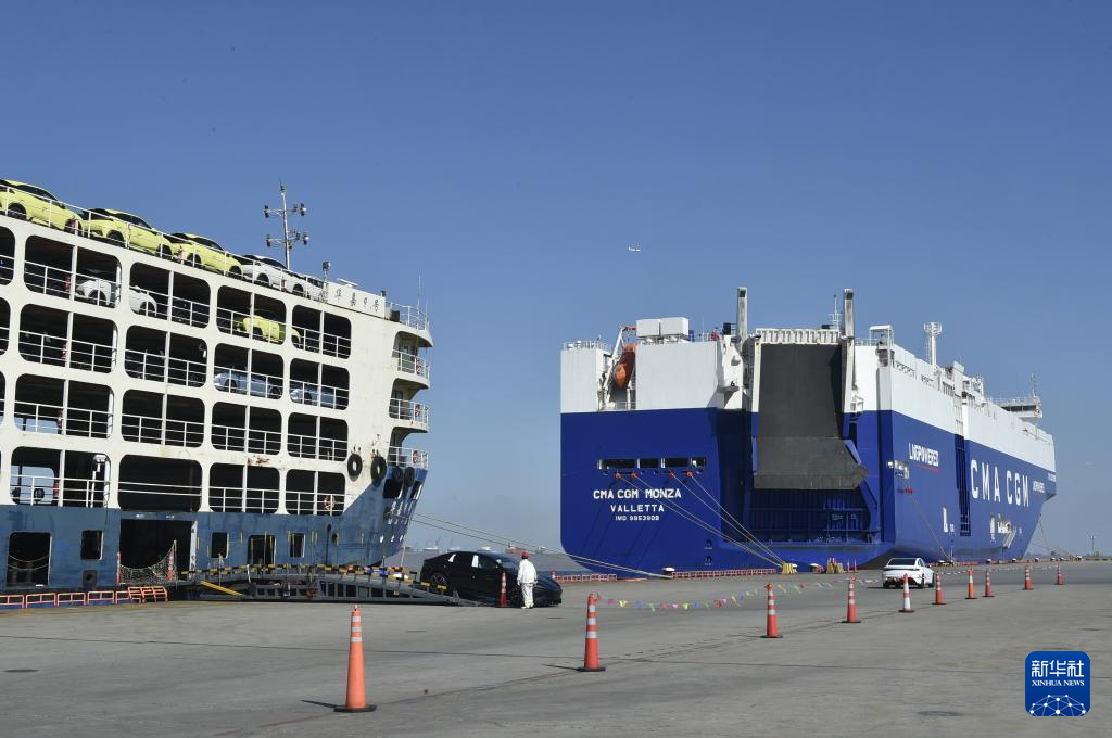 一艘裝載出口國產汽車的滾裝船??客飧酆Mùa頭(9月11日攝)。