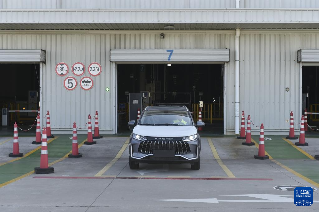 9月11日,在外港海通碼頭的大型汽車自動化立體倉庫,工作人員駕駛新車準備裝運出口。