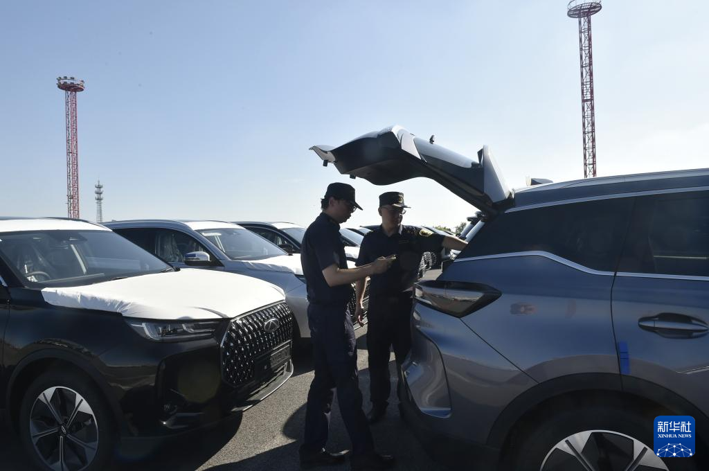 9月11日,在外港海通碼頭的汽車堆場,海關工作人員查驗準備出口的新車。