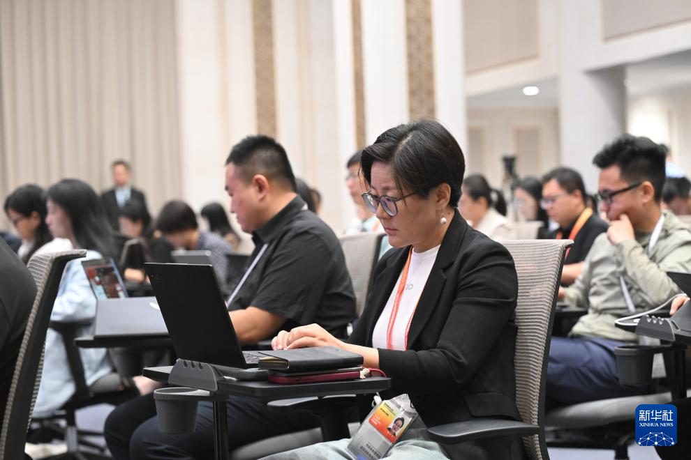 9月12日,國務院新聞辦公室在北京舉行“高質量完成‘十四五’規劃”系列主題新聞發布會。中央政法委秘書長訚柏,全國人大常委會法工委主任沈春耀,最高人民法院副院長、二級大法官賀小榮,最高人民檢察院副檢察長、二級大檢察官張雪樵,公安部副部長楊維林,司法部副部長吳言軍介紹“十四五”時期堅定不移走中國特色社會主義法治道路有關情況,并答記者問。這是記者在發布會上工作。