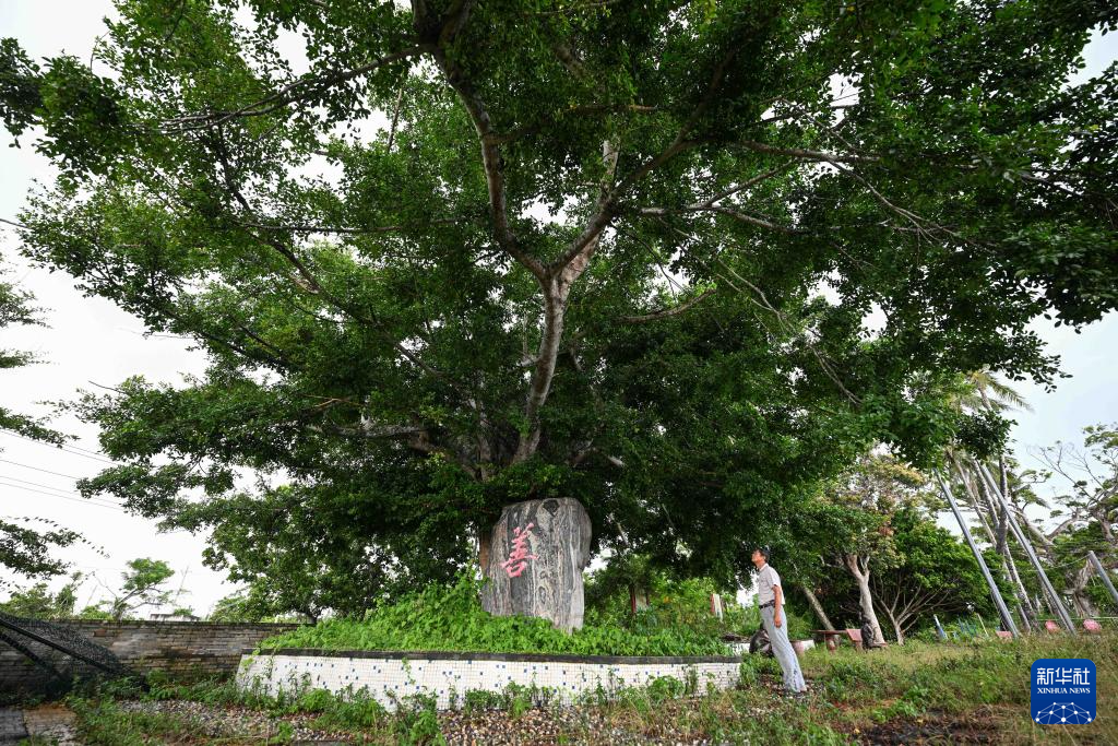 這是在海南省文昌市文教鎮加美村拍攝的古樹(9月10日攝)。加美村內有不少上百年的古樹。