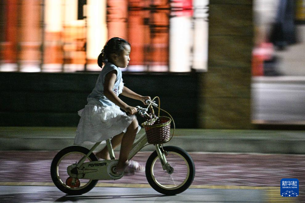 9月3日,小朋友在位于海南省文昌市文教鎮加美村的自家屋外騎行玩耍。