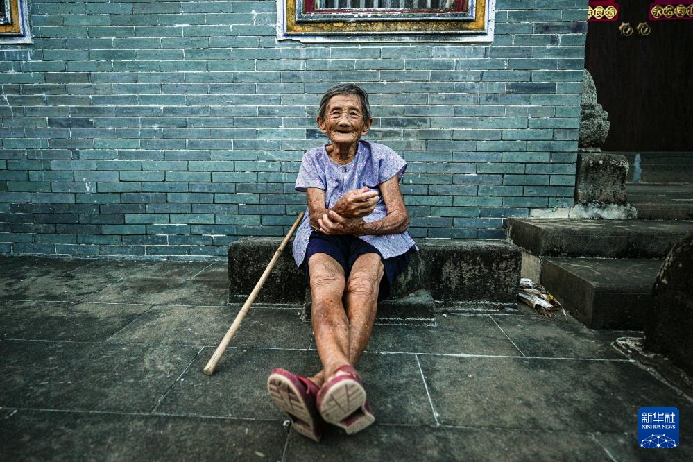 9月9日,在海南省文昌市文教鎮加美村,年邁的村民在邢宥故居門前納涼。
