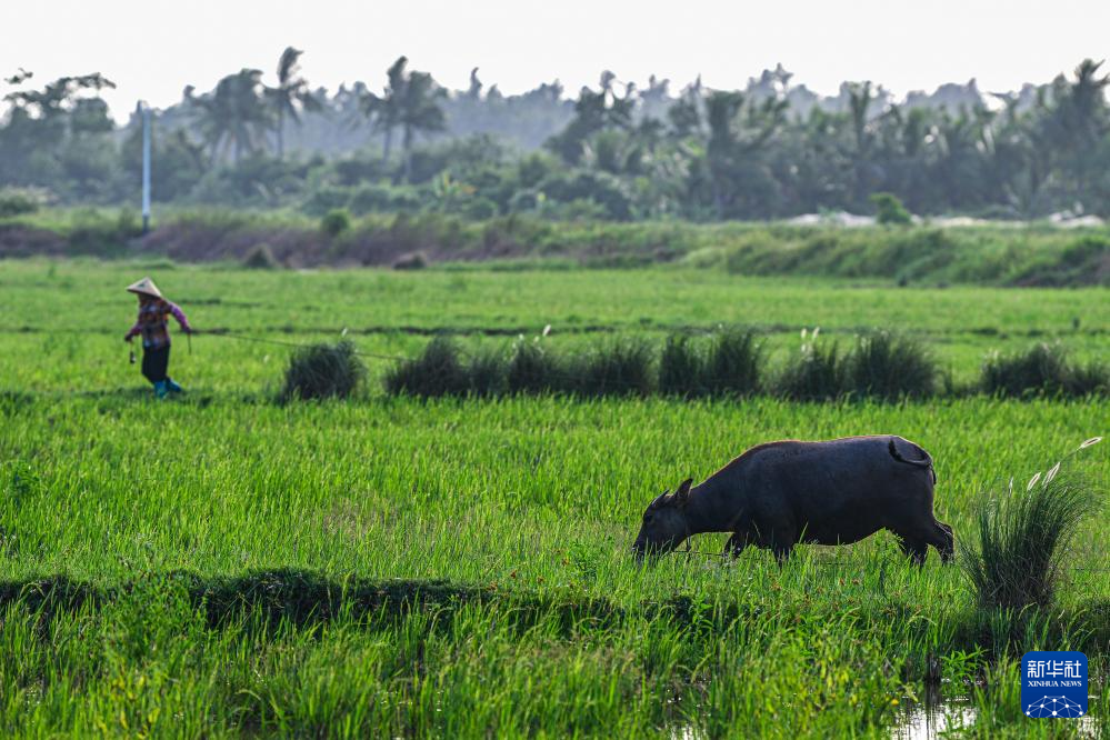 9月9日,村民在海南省文昌市文教鎮加美村田間放牛。