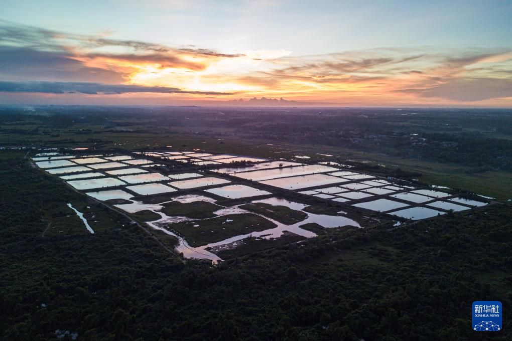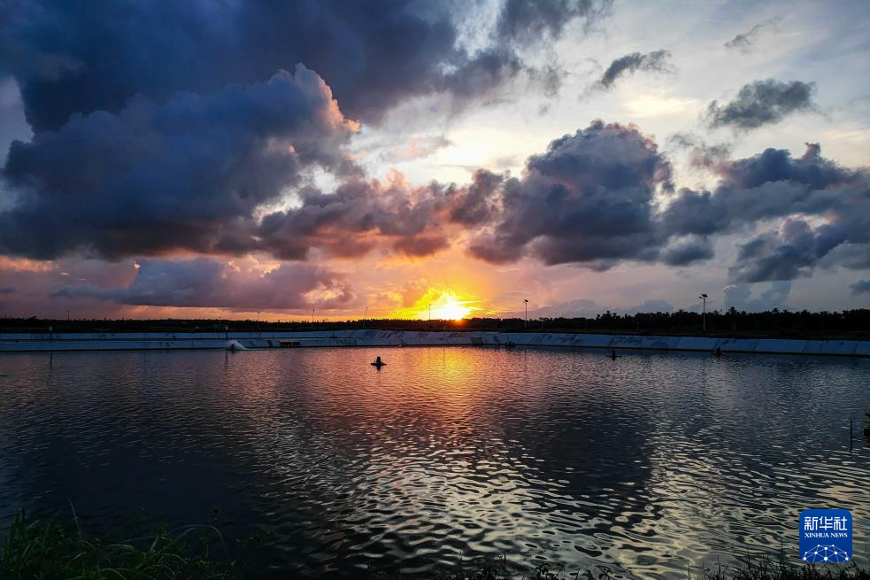 這是在海南省文昌市文教鎮加美村拍攝的夕陽下的養殖塘(8月31日攝)。