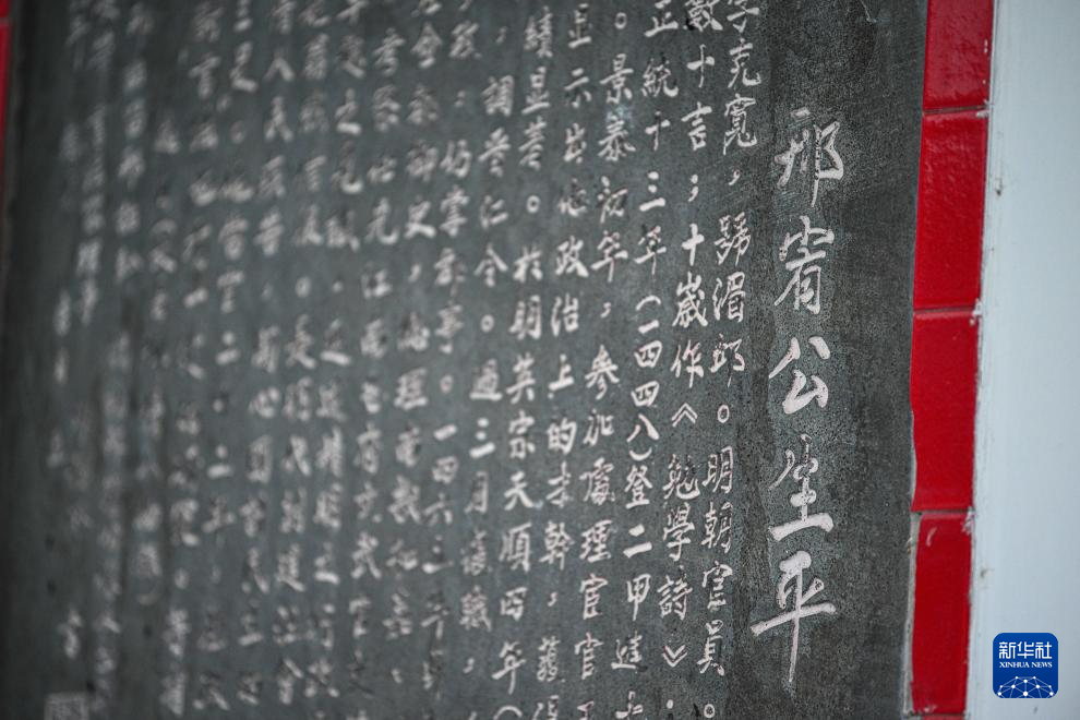 這是在海南省文昌市文教鎮加美村拍攝的刻有邢宥公(邢宥尊稱)生平的碑文(9月3日攝)。