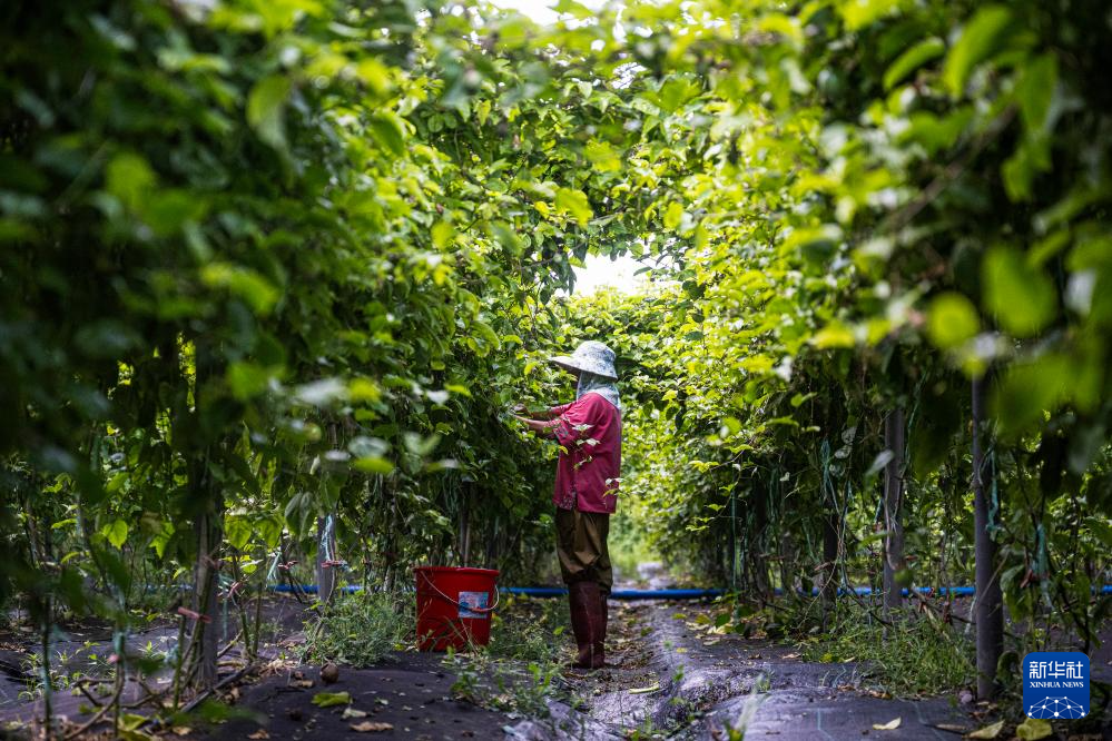 9月11日,農民在海南省文昌市文教鎮加美村百香果種植基地采摘百香果。
