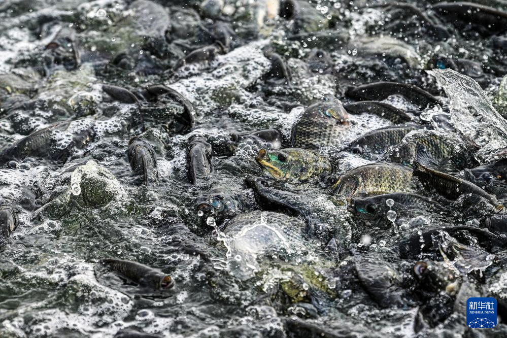 這是在海南省文昌市文教鎮加美村養殖塘拍攝的搶食的魚兒(9月8日攝)。