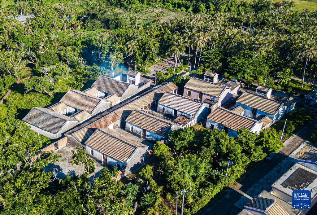 這是在海南省文昌市文教鎮加美村拍攝的傳統民居,村巷整齊,炊煙裊裊(無人機照片,9月11日攝)。