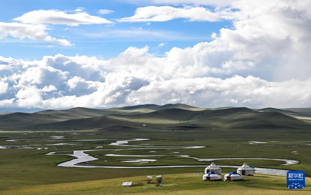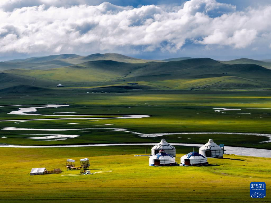 近日,內蒙古呼倫貝爾陳巴爾虎草原披上秋的霓裳,莫爾格勒河如藍色哈達在金黃草甸間迤邐蜿蜒,景色壯美。